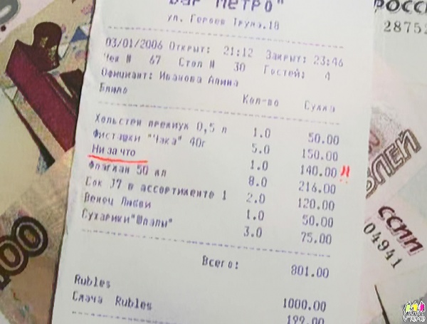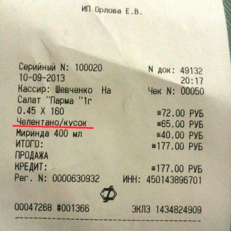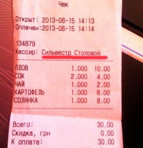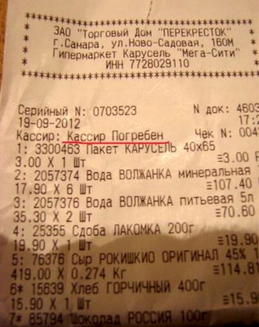 Очень смешно. Я раньше не обращала внимание на надписи в чеках.