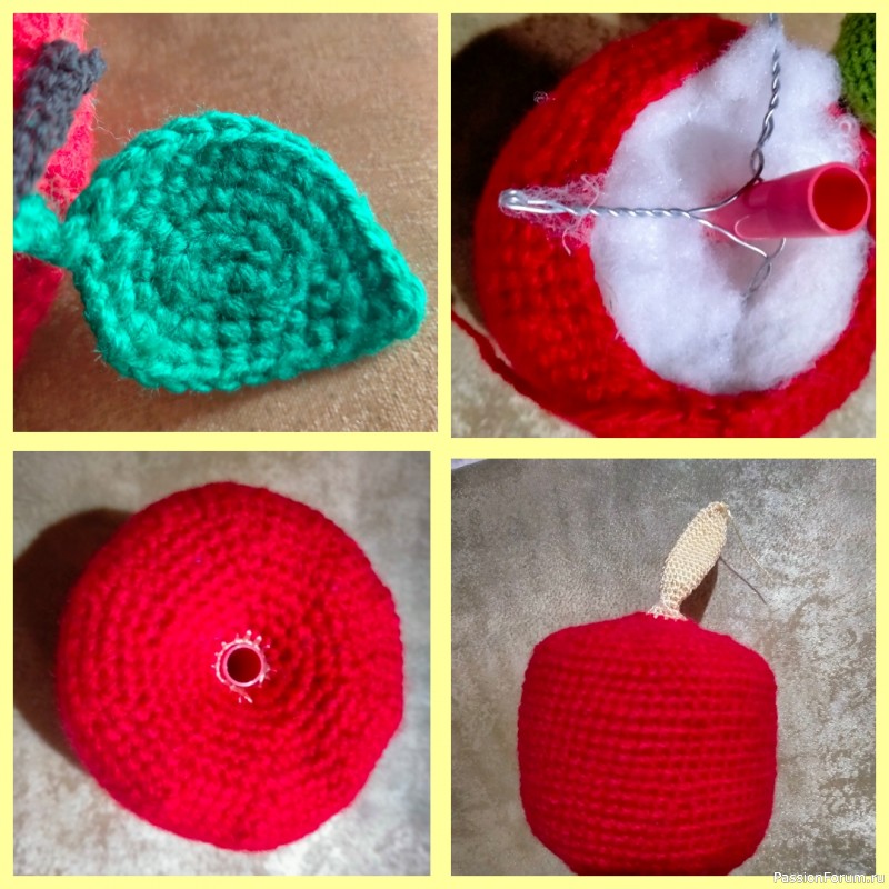 Думаю, что при желании можно довязать небольшой кармашек на яблоке для карандаша и линейки, получится миниорганайзер.