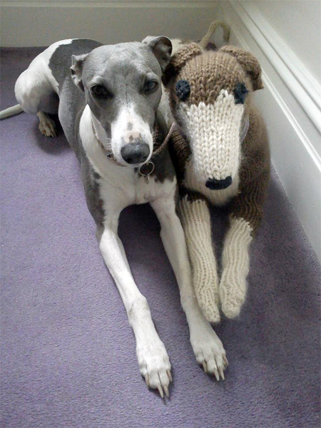 Модели собак в натуральную величину вяжут спицами салли Мюр и Джоанна Осборн. По их словам, в первую очередь игрушки предназначены для людей, которые не могут иметь питомца в силу разных причин. Вязаные животные лишены недостатков живого питомца – лая, шерсти, необходимости выгула. Также авторши издают книги со схемами вязания собак, кошек, диких животных и зомби.
