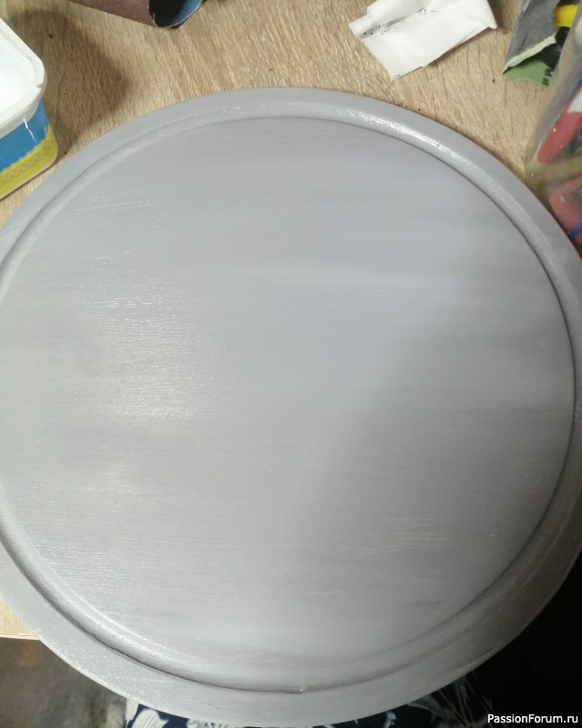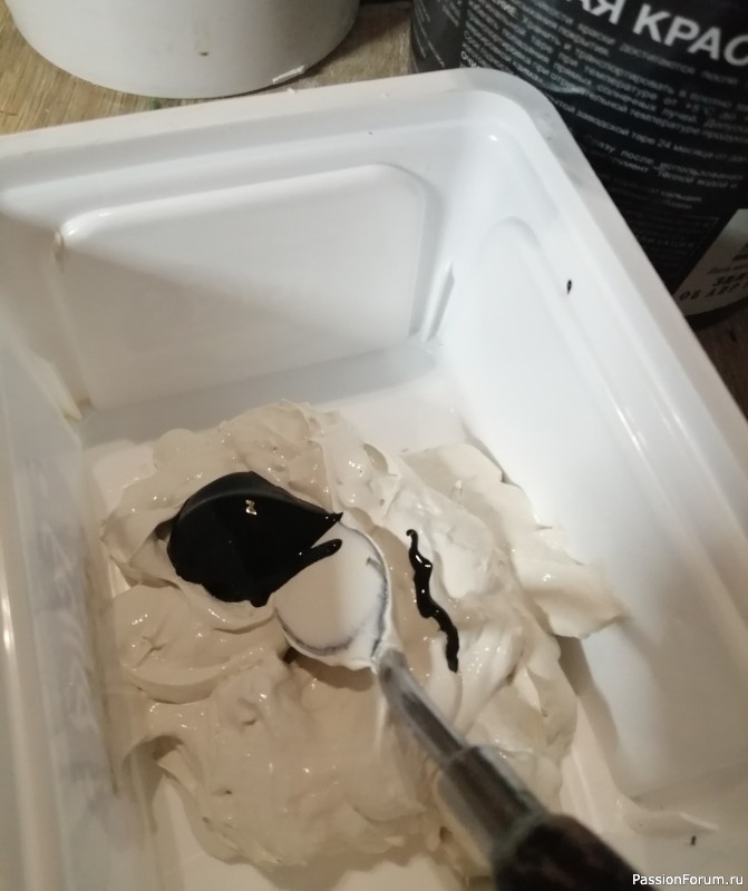 Наложила один слой краски, цвет серый, подбирала не темный и не сильно светлый. Просушила.