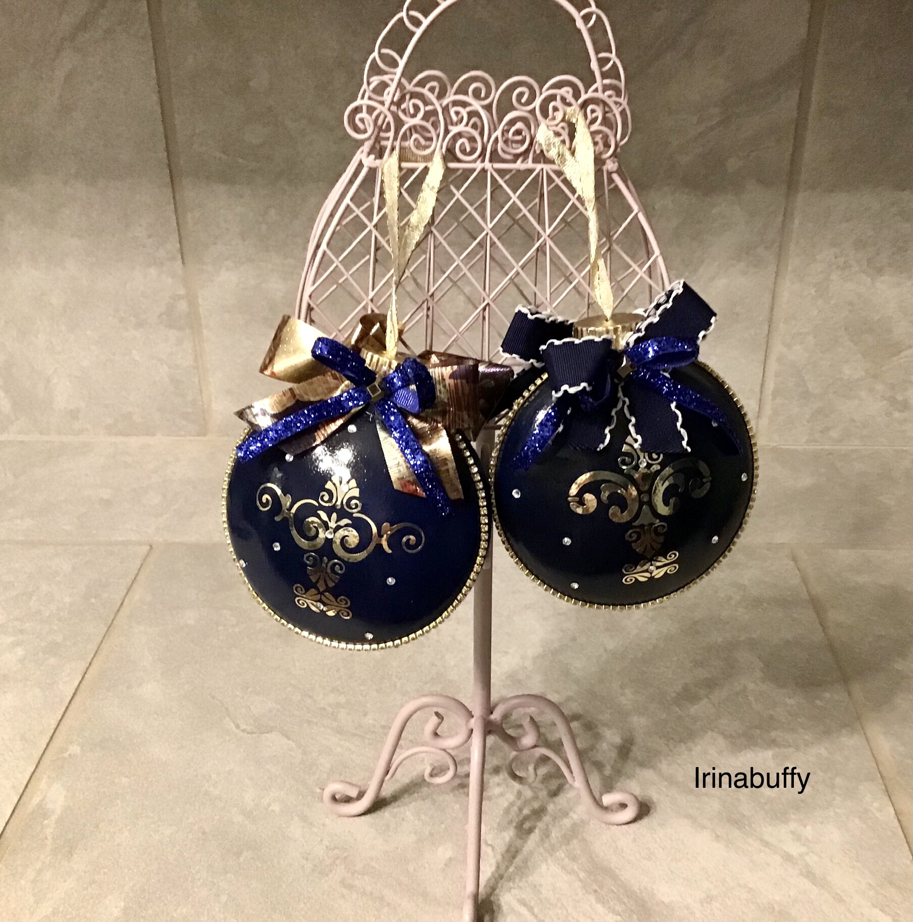 Ирочка, это просто бесподобно!!! Столько красоты сотворила. Ты смелая, темно синий цвет на елку))) Но с золотым декором, эти игрушки будут очень выразительно смотреться. Я в один год, как то купила именно темно синие шары и они у меня «потерялись» на елке