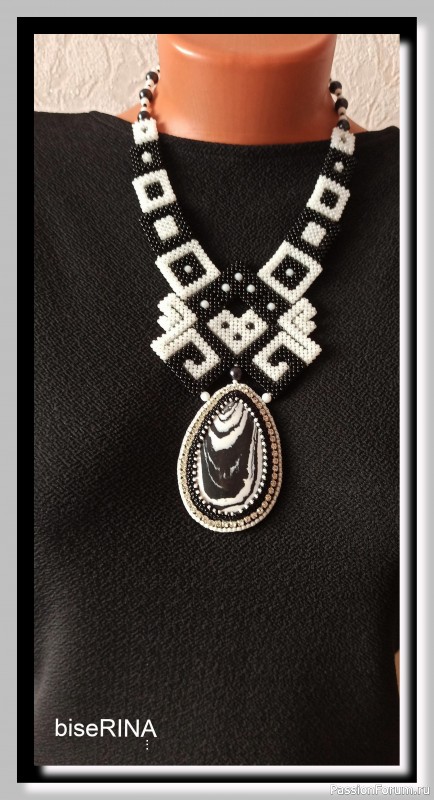 Колье "Инь-Янь". Выполнено в технике "квадратный жгут". Длина по шее 44 см.