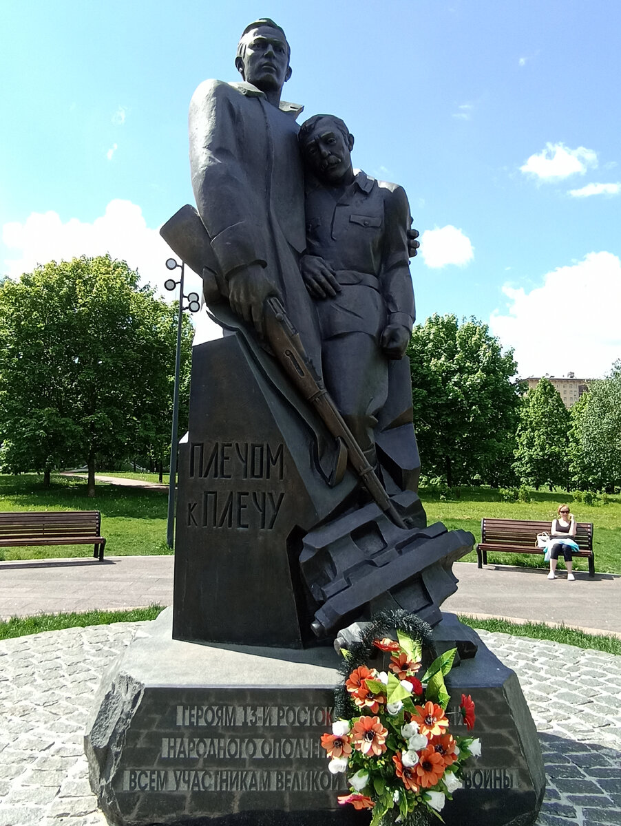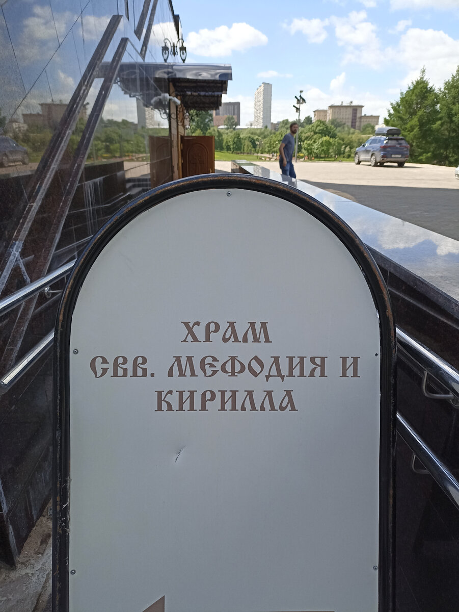 Скульптура располагается за Храмом Святых Мефодия и Кирилла. Недалеко - Ростокинский акведук.