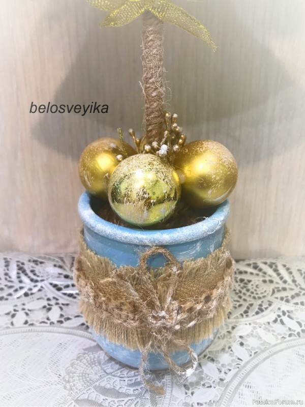 Людмила, Вы сначала просто прикиньте, как это будет смотреться. Елочка же у Вас красавица со всех сторон. Поэтому я и советую сделать снежинку-макушку, чтобы можно было елочку любой стороной повернуть. А снежинка на стаканчике с одной стороны будет видна.