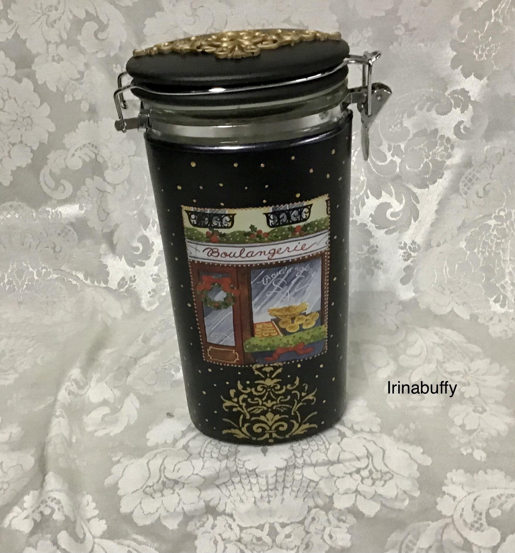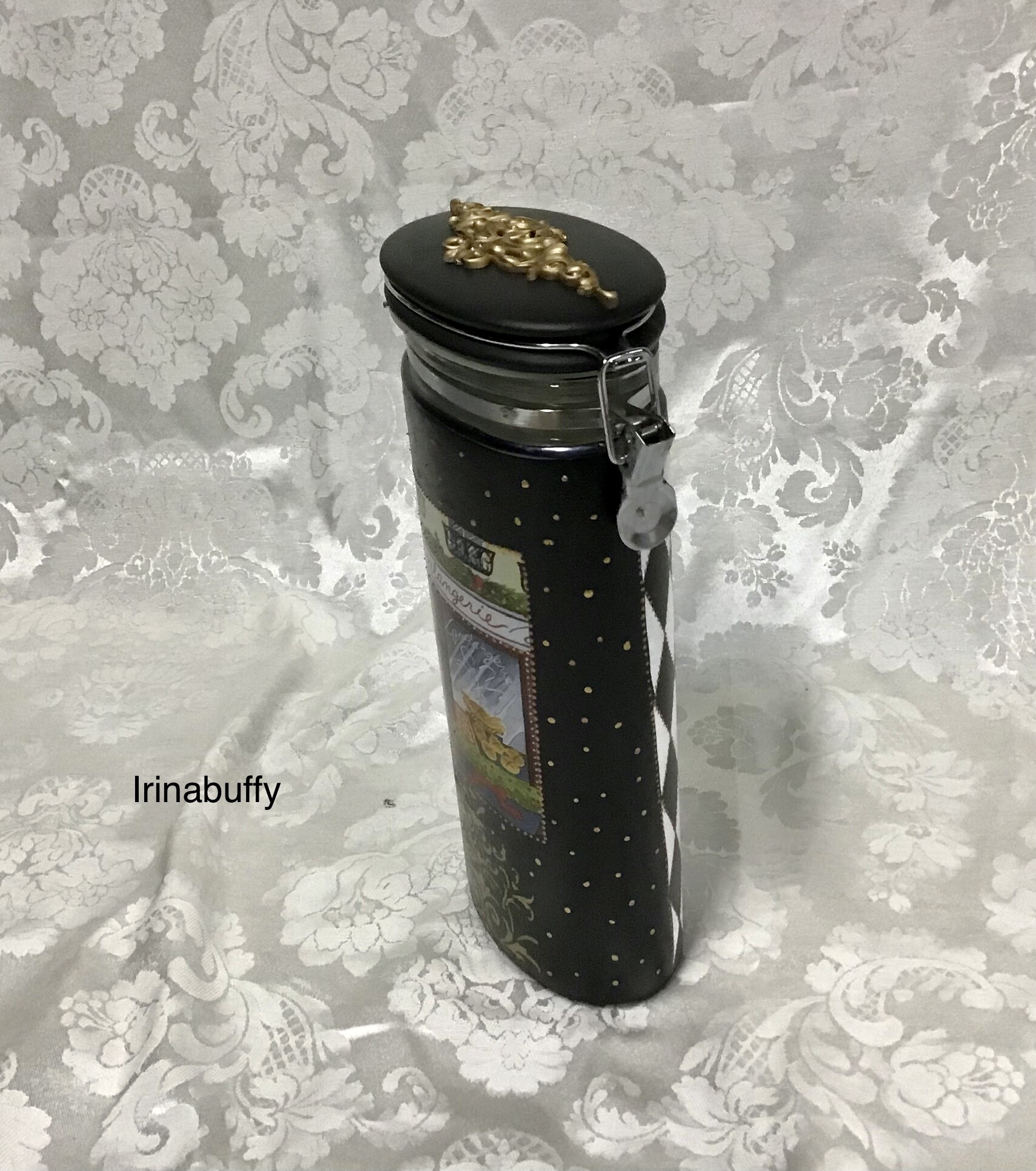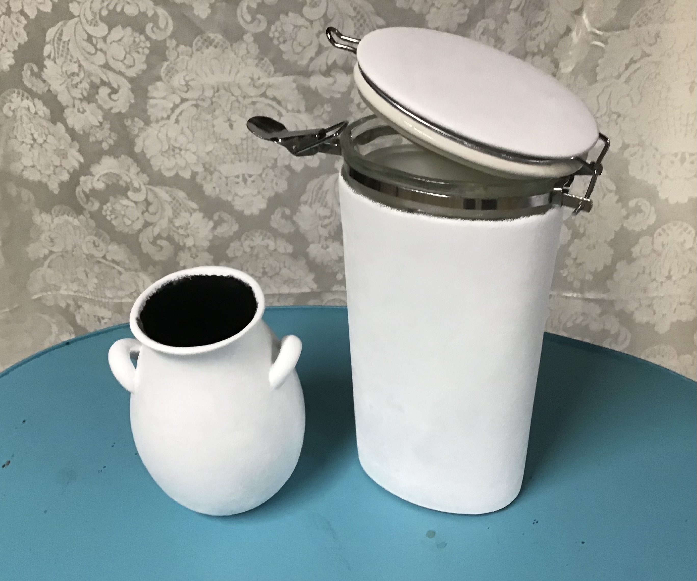Для декора взяла две заготовки,кринку керамическую и стеклянную спагетницу ,обе закруглённые.На ровной поверхности будет намного легче сделать.