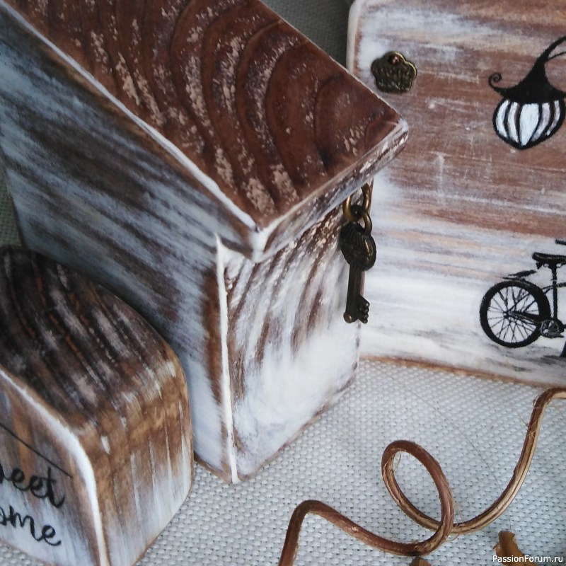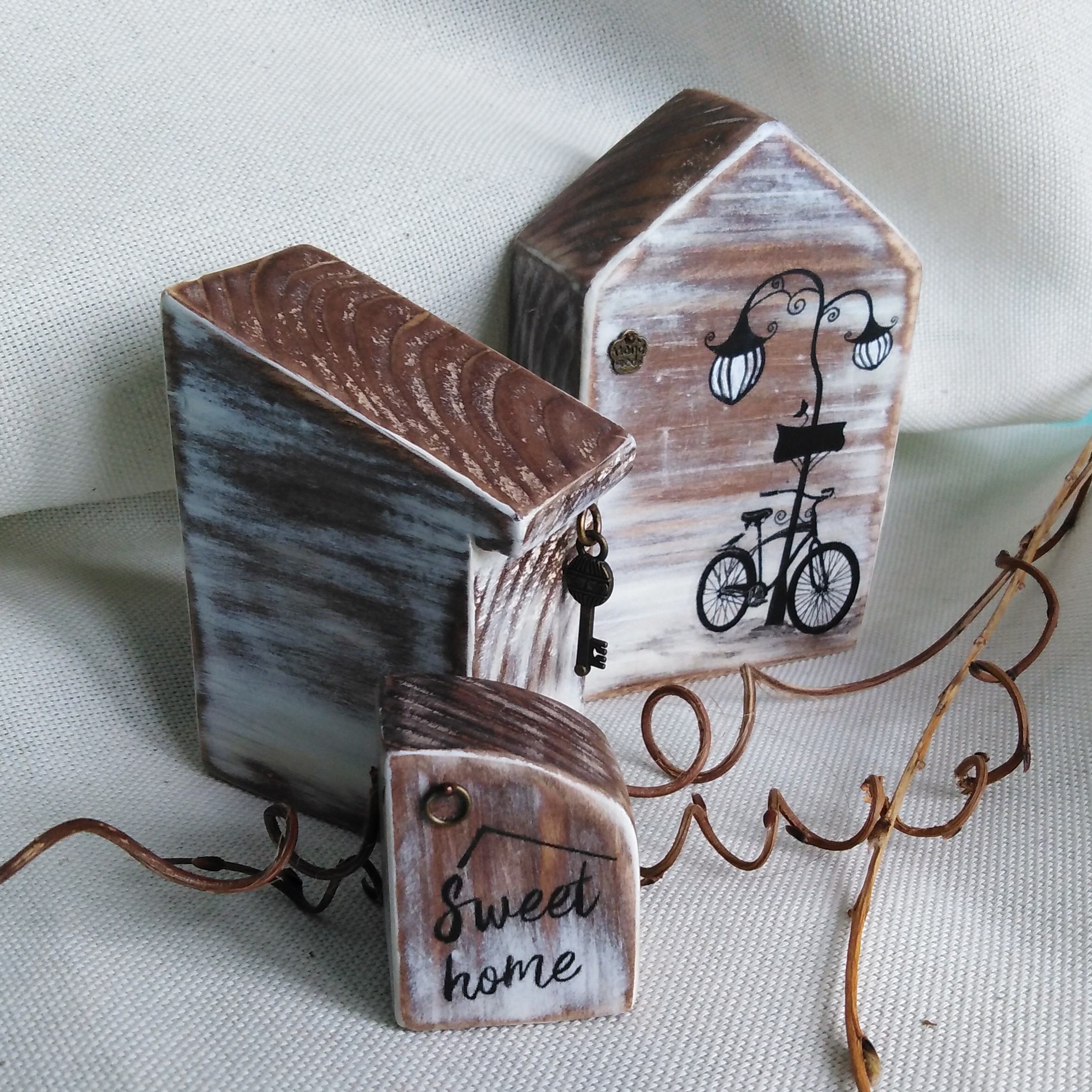 Недавно я показывала досочки, которые напилила для будущего декора. Доски еще полностью не закончила, а вот домики готовы.