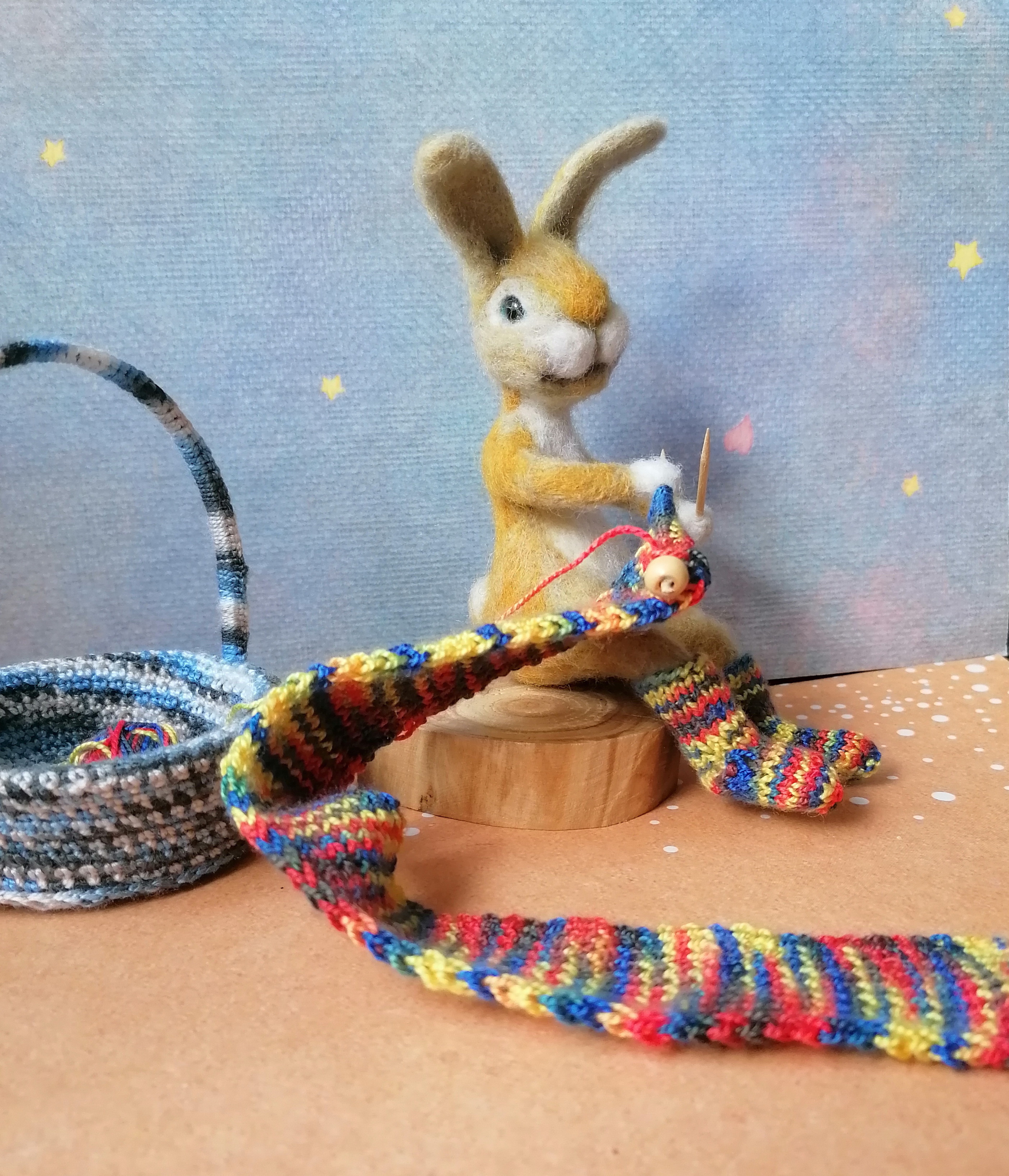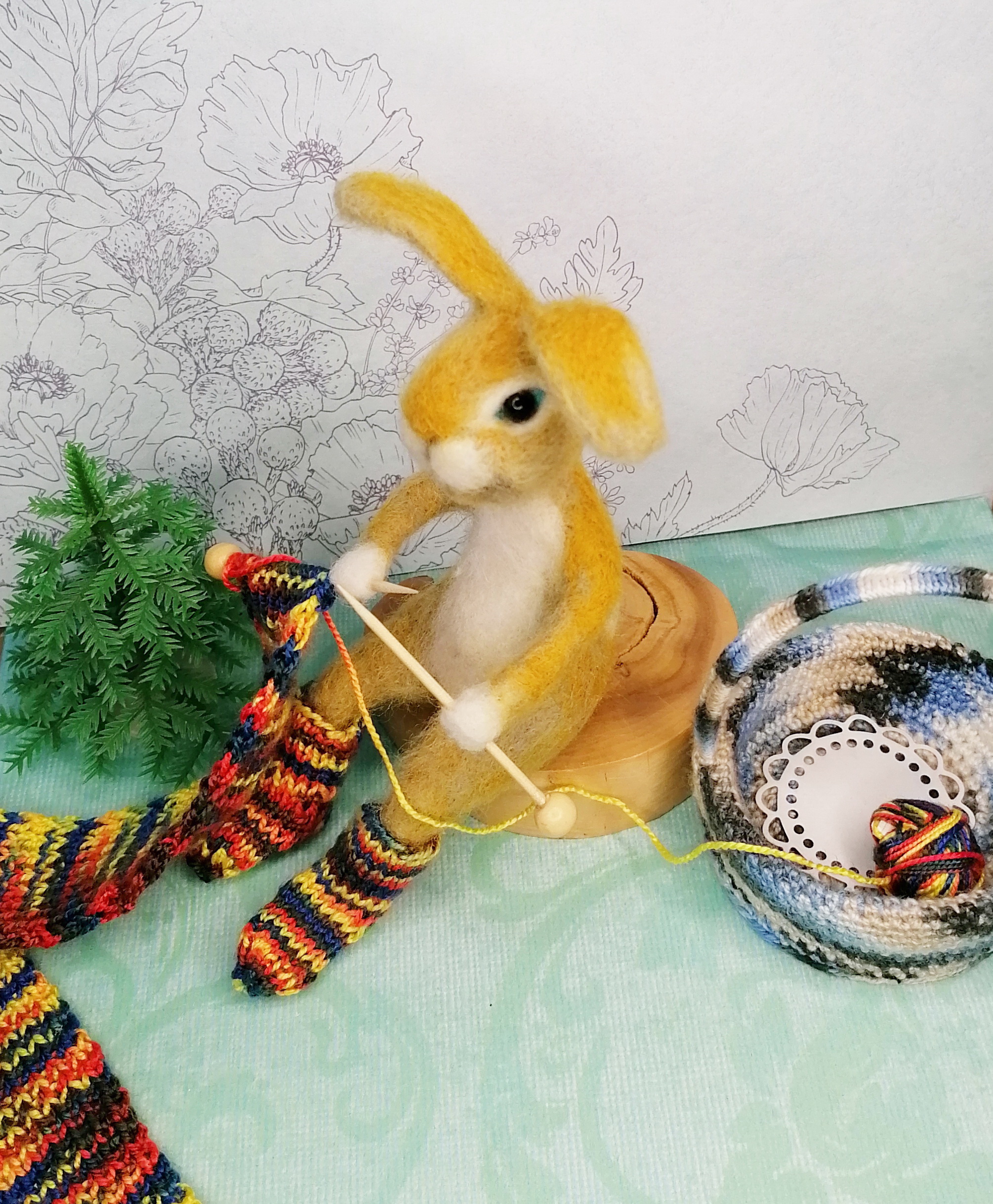 Все это время эта идея вертелась в голове, но до конца образ полностью не появлялся. не могла выбрать зверька, который бы взялся за вязание.