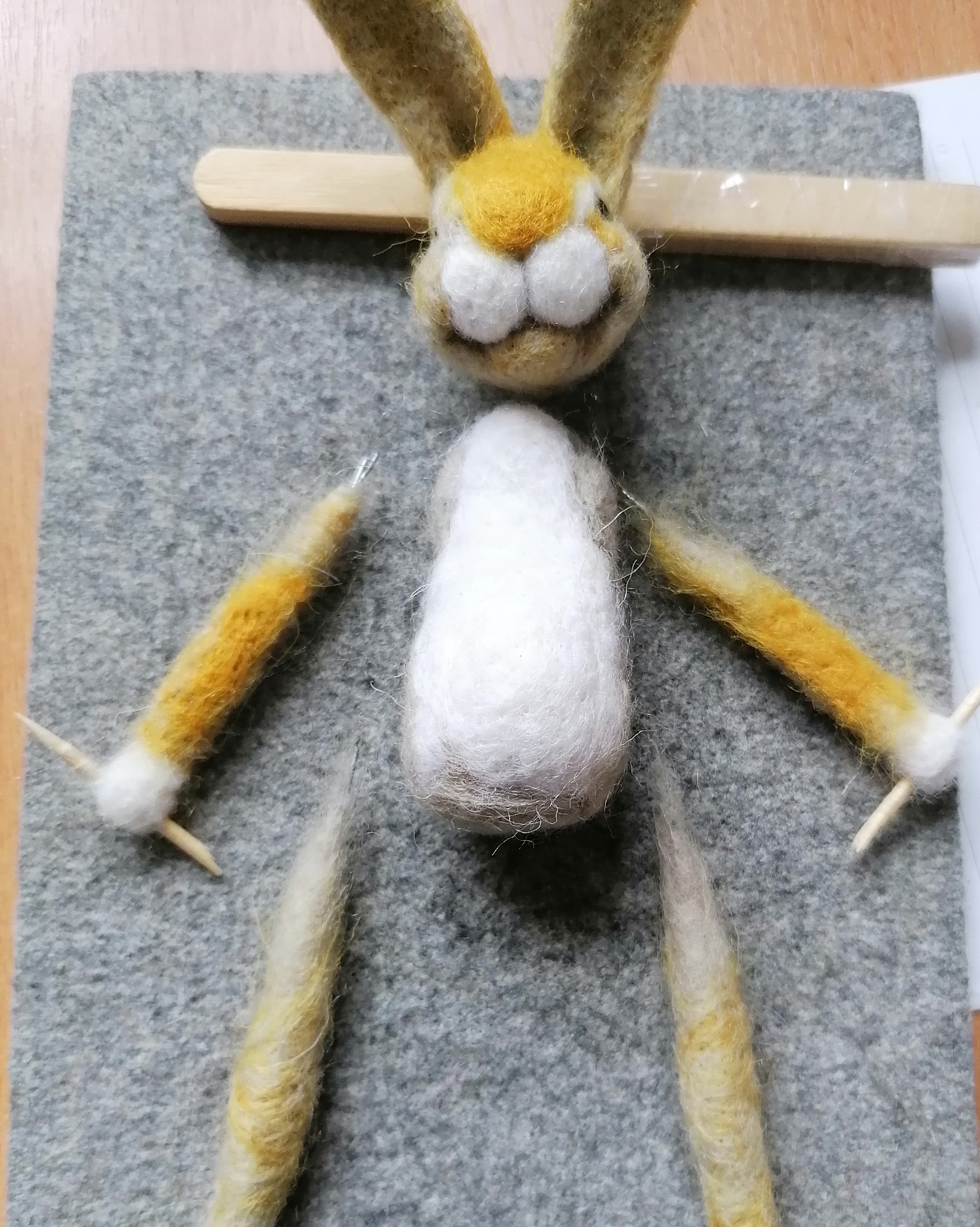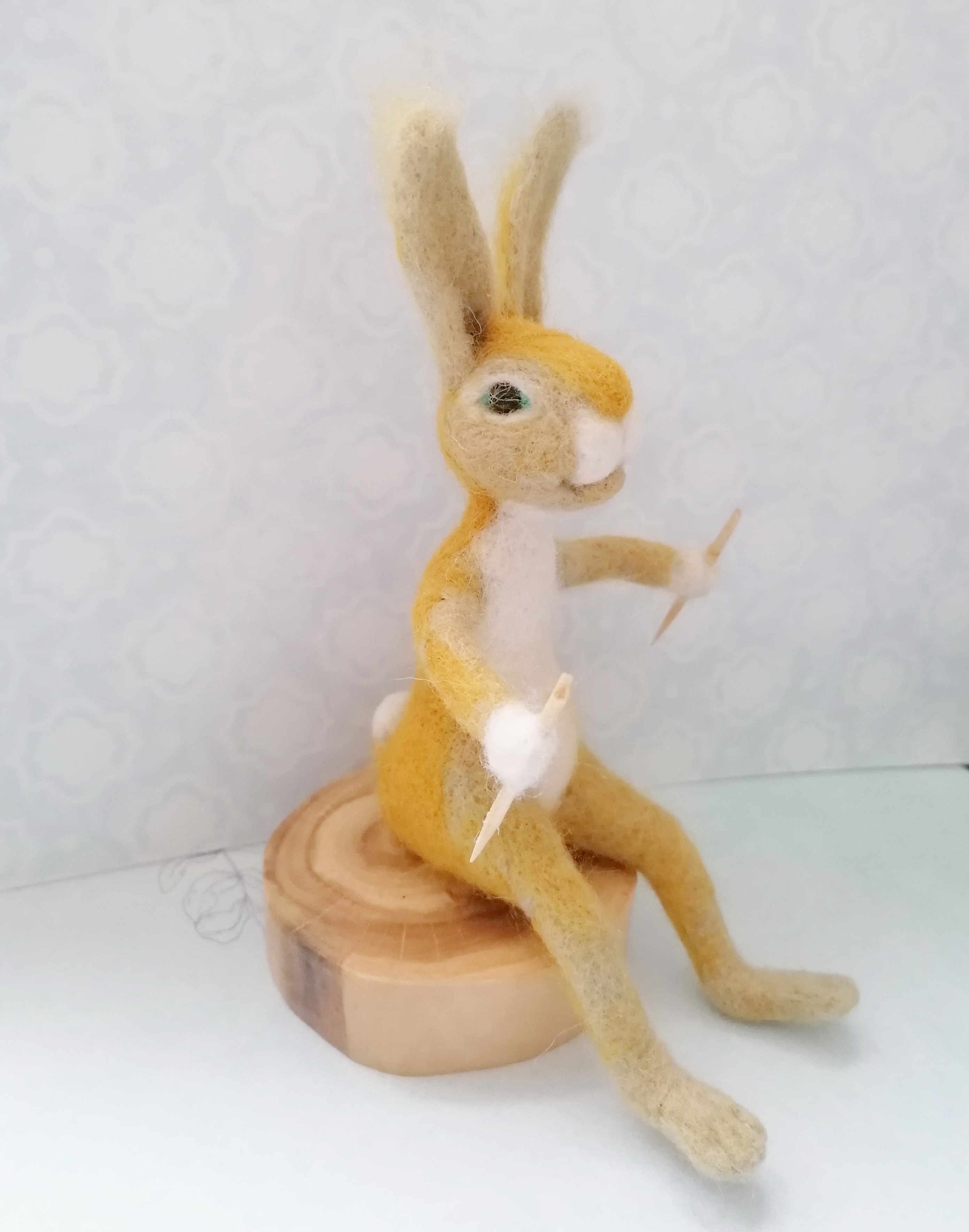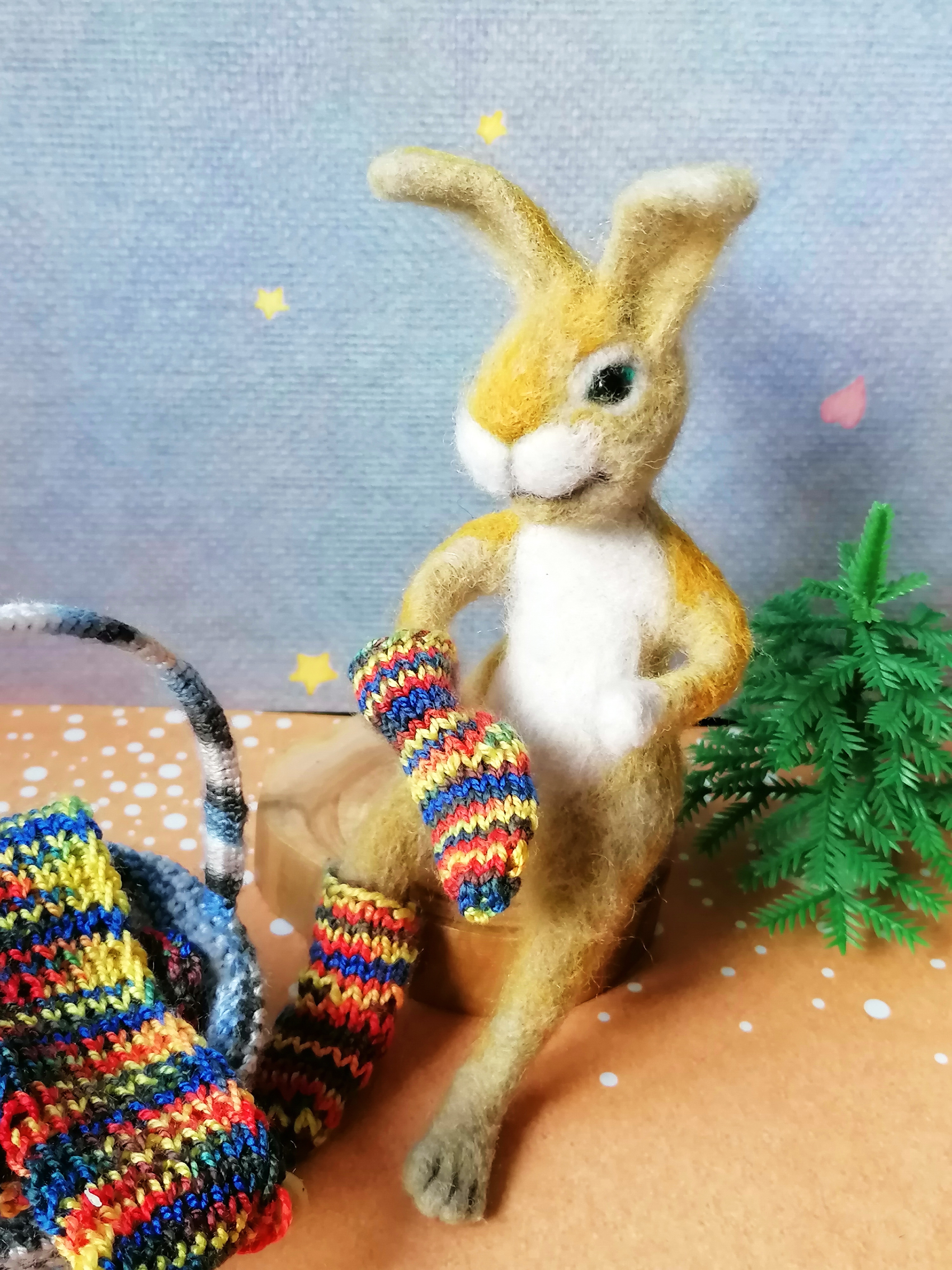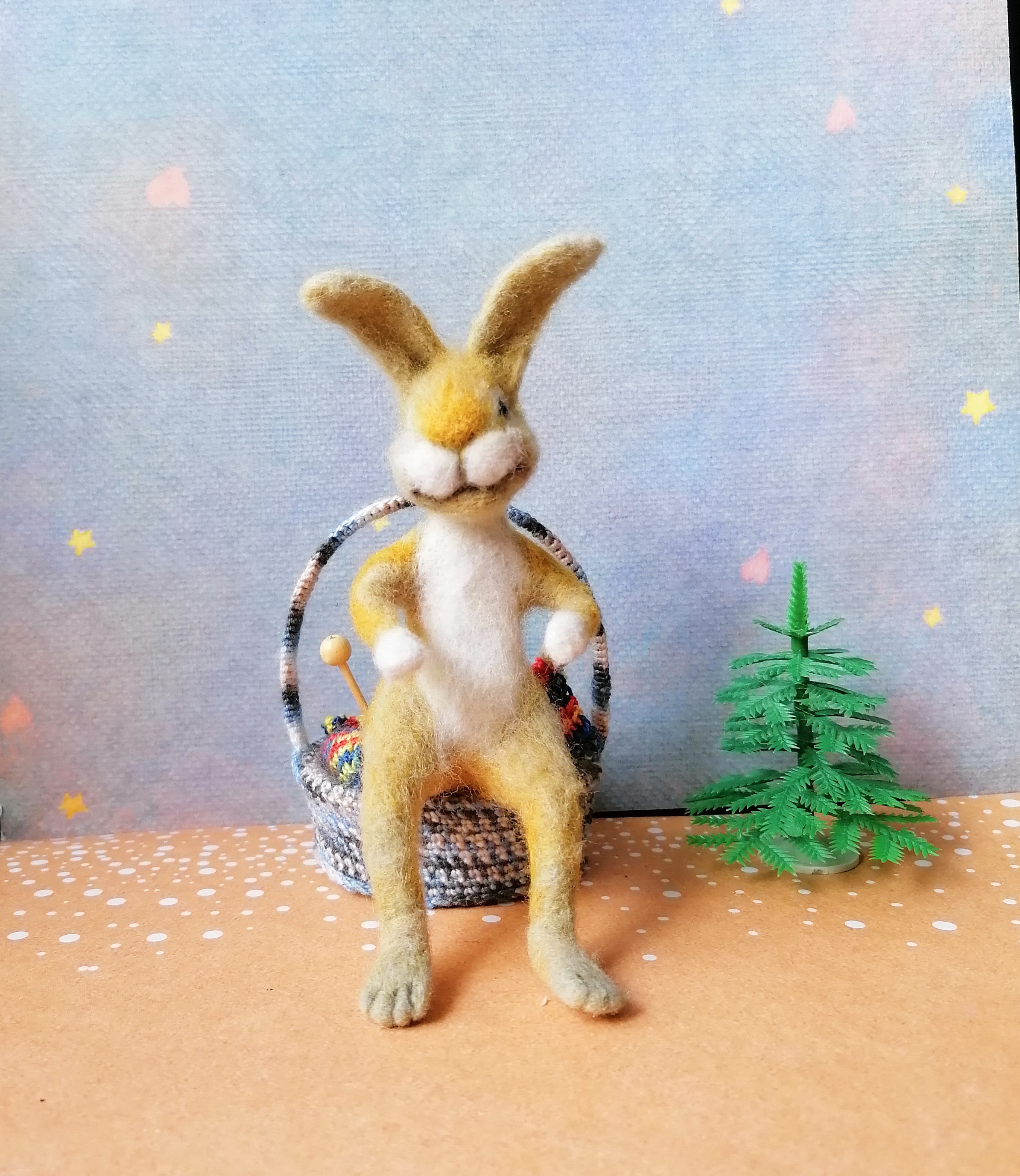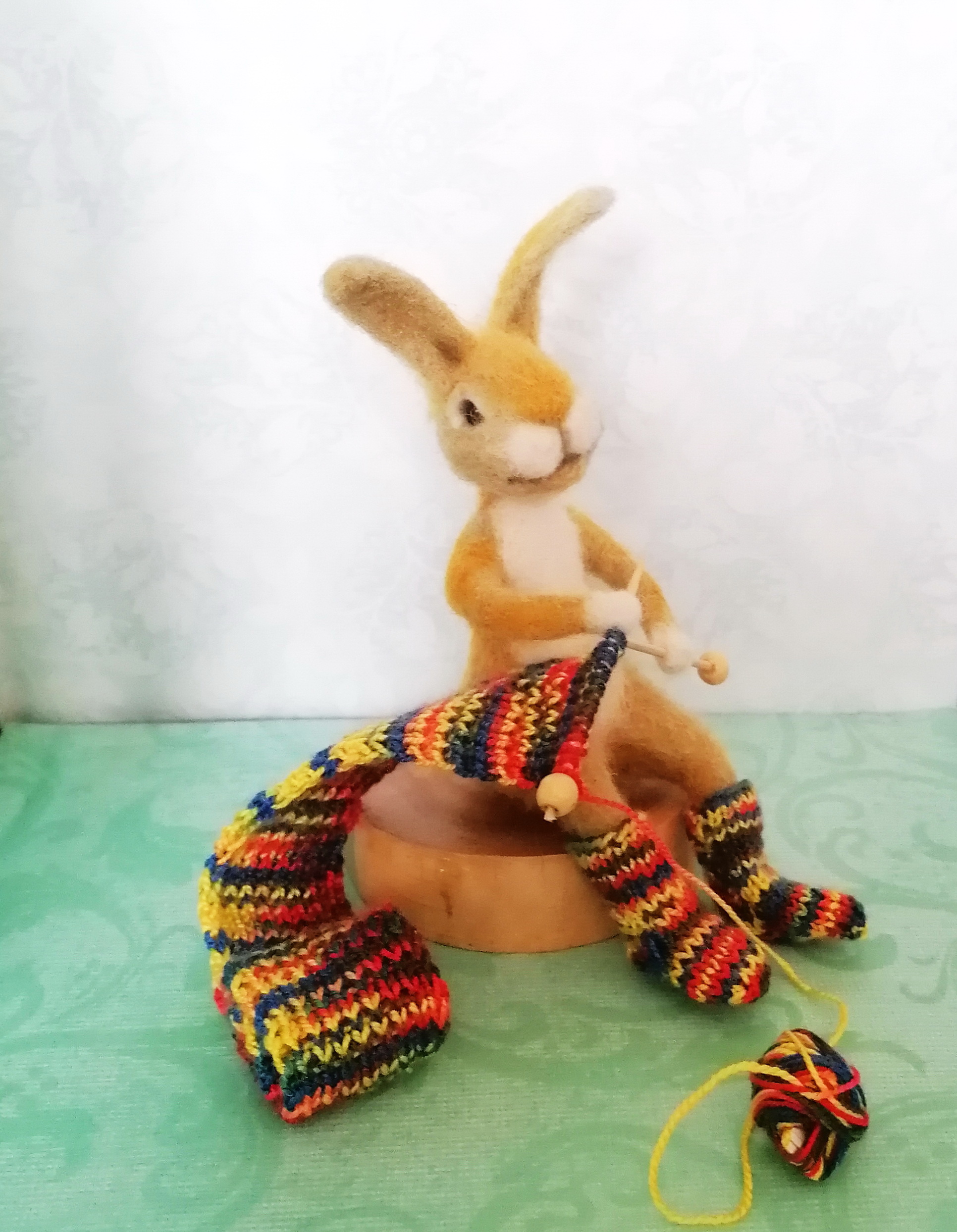 Вот соединив все это я сделала вот такого Зайчика, который вяжет себе на холодную зиму носочки и шарфик. Потом свяжет себе и шапочку и теплую кофточку...