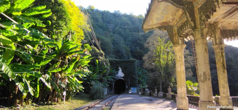 Спасибо за рассказ, вспомнила наше путешествие на Рицу, где-то фото лежит на фоне то ли мужских, то ли женских слез))) Опять же вспомнила форелевое хозяйство и форель ту вкуснющую)))) Станция Пцырсха красивая, как жаль, что сейчас в таком состоянии(((( А цветок это дурман я думаю. Отличное путешествие, надо бы выбраться в Абхазию?!
