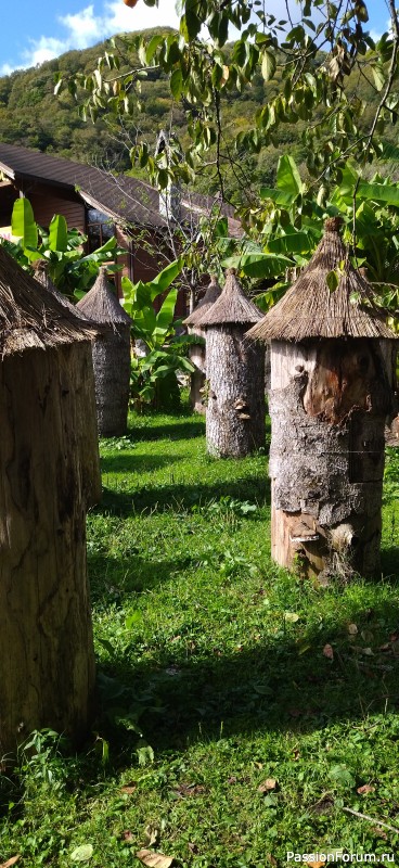 Ульи, где живут абхазки. Это стволы деревьев. Либо естественное дупло, либо его вырезают