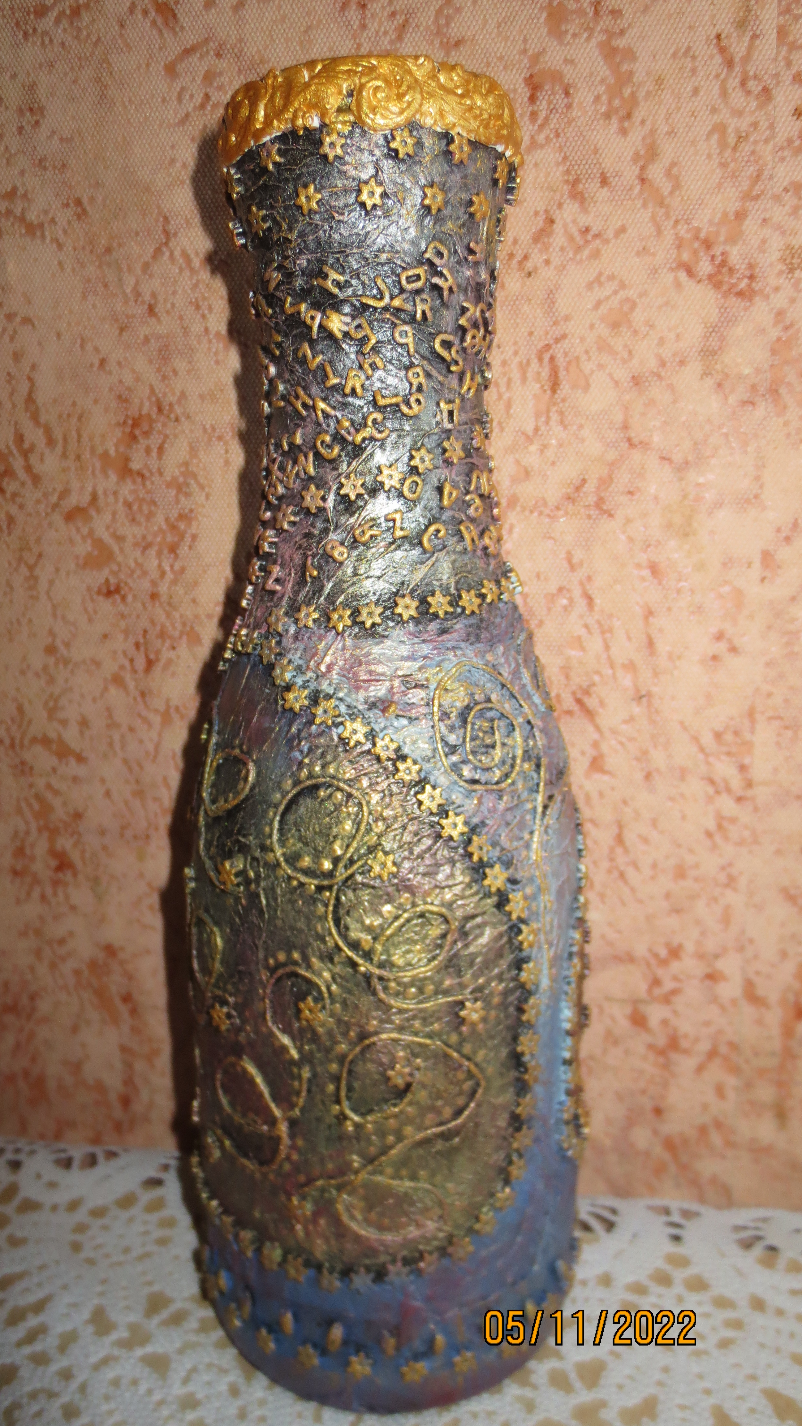 Все три вазы в разных техниках.Использовала :салфетки,клей ПВА,акриловые краски,металлик -золото,отливки из молдов,макаронные изделия,двухшаговый кракелюр.