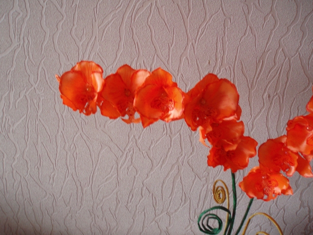 Людмила! Ваши орхидеи-замечательные. А, вот, горшок и его декор-грубоваты, для таких изысканных цветов, это, сугубо, моё мнение.Если-бы, была, просто ленточка, не косичка, вид был-бы, сегче, нежнее.Можно корзину сделать тёмно- оранжевую, чтобы не сливалась зелень листьев с зелёной корзиной, а ленту, пропустить зелёную. Тогда будет достигнута цветовая гармония и каждая деталь, будет, играть по-своему индивидуально, но, в тоже время, останется одним целым.Моё мнение.