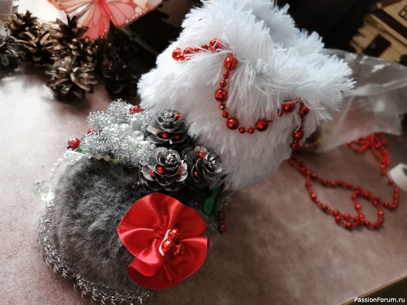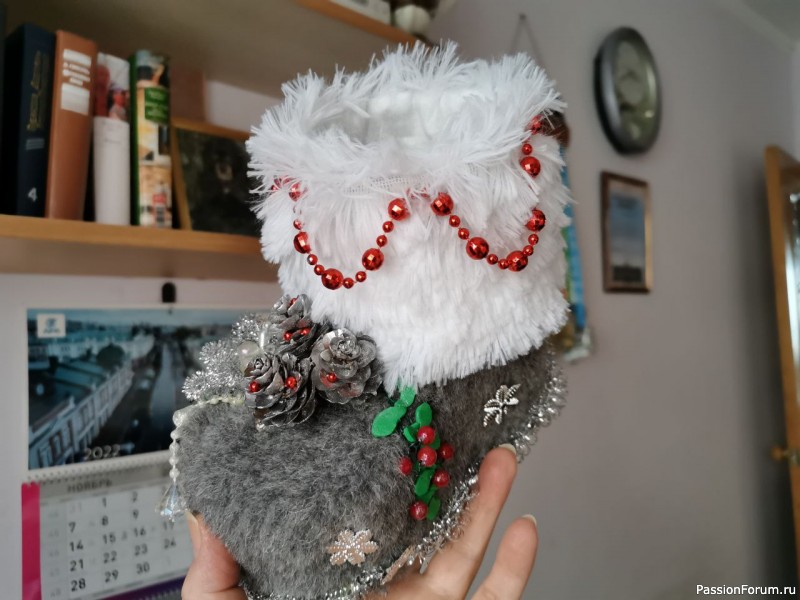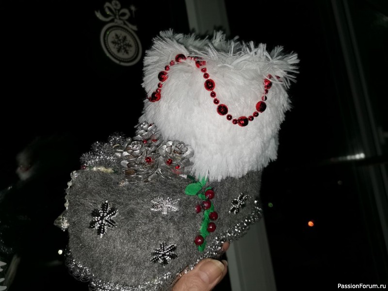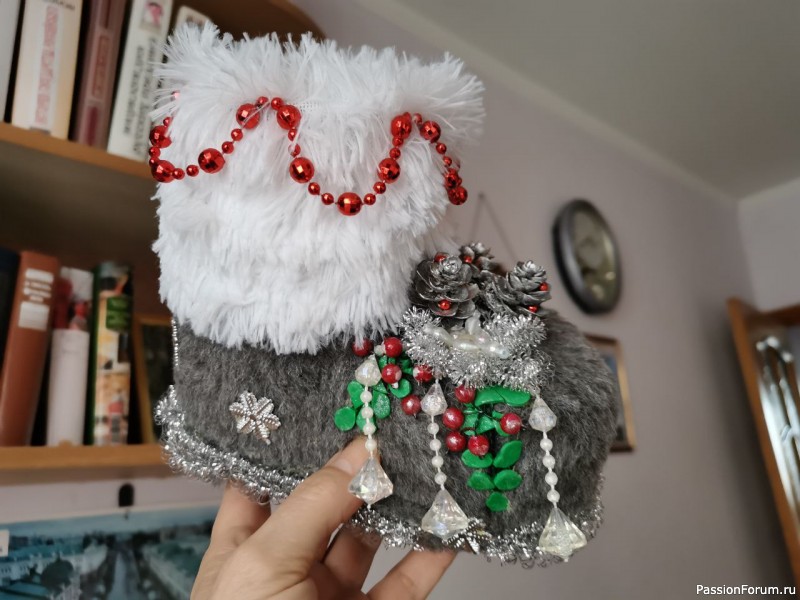 Как здорово оживили валеночек красные бусики! Вот теперь они точно праздничные и новогодние получились!