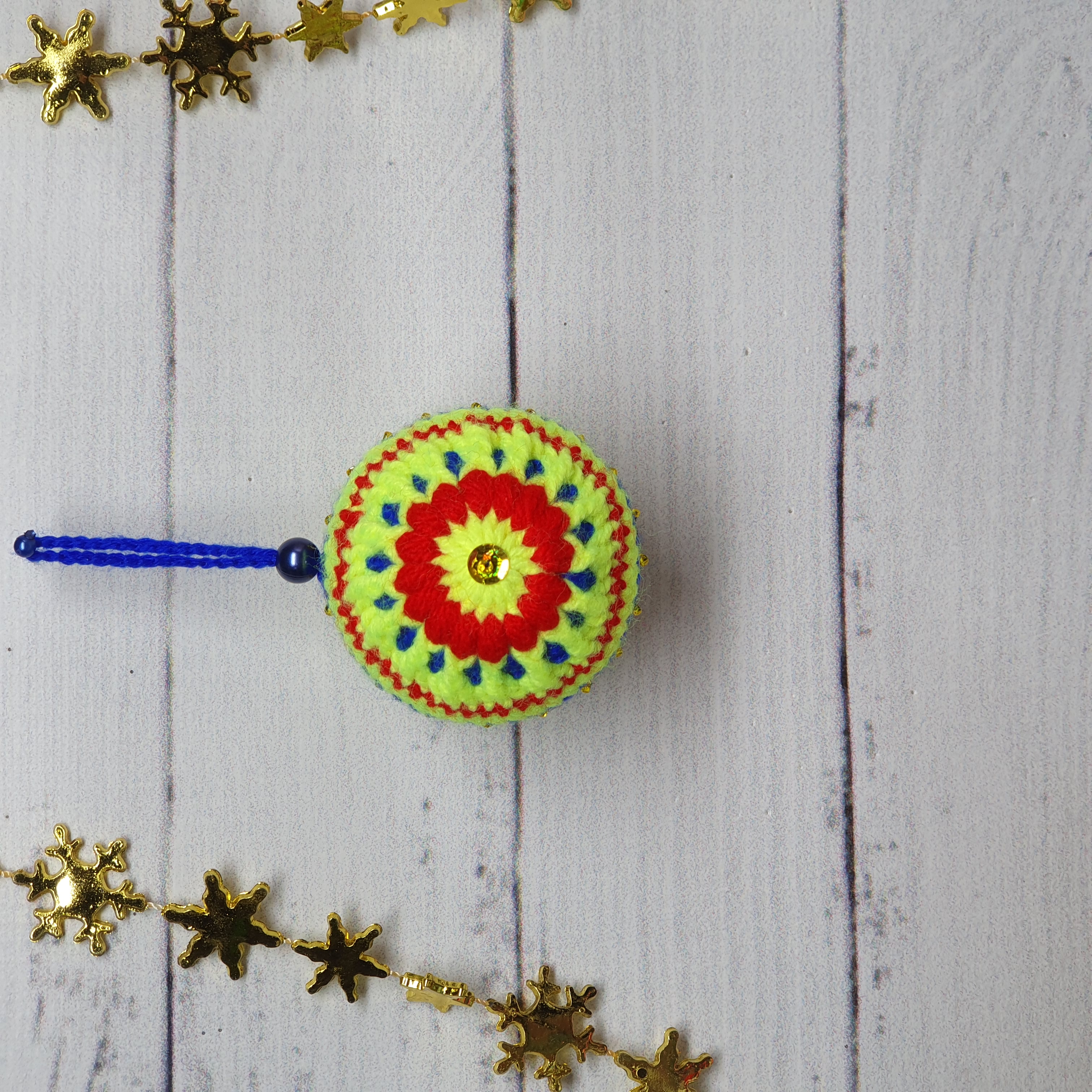 Получилось три новогодних шарика. Вязать оооочень понравилось. Да и придумывать разные расцветки и украшения тоже пришлись по душе. В ход пошли пайетки, бисер, стразы.