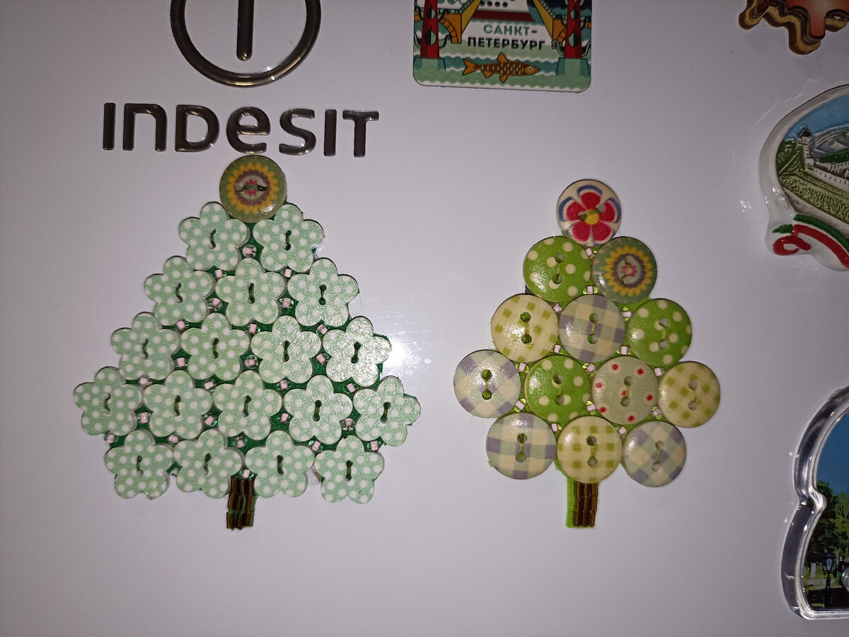 Здравствуйте. Сегодня сделала две ёлочки-магнита из пуговиц. Можно сделать похожим образом ёлочки-игрушки на большую новогоднюю ель, ниже расскажу как. А сейчас - как создавала магниты на холодильник. Приятного просмотра!