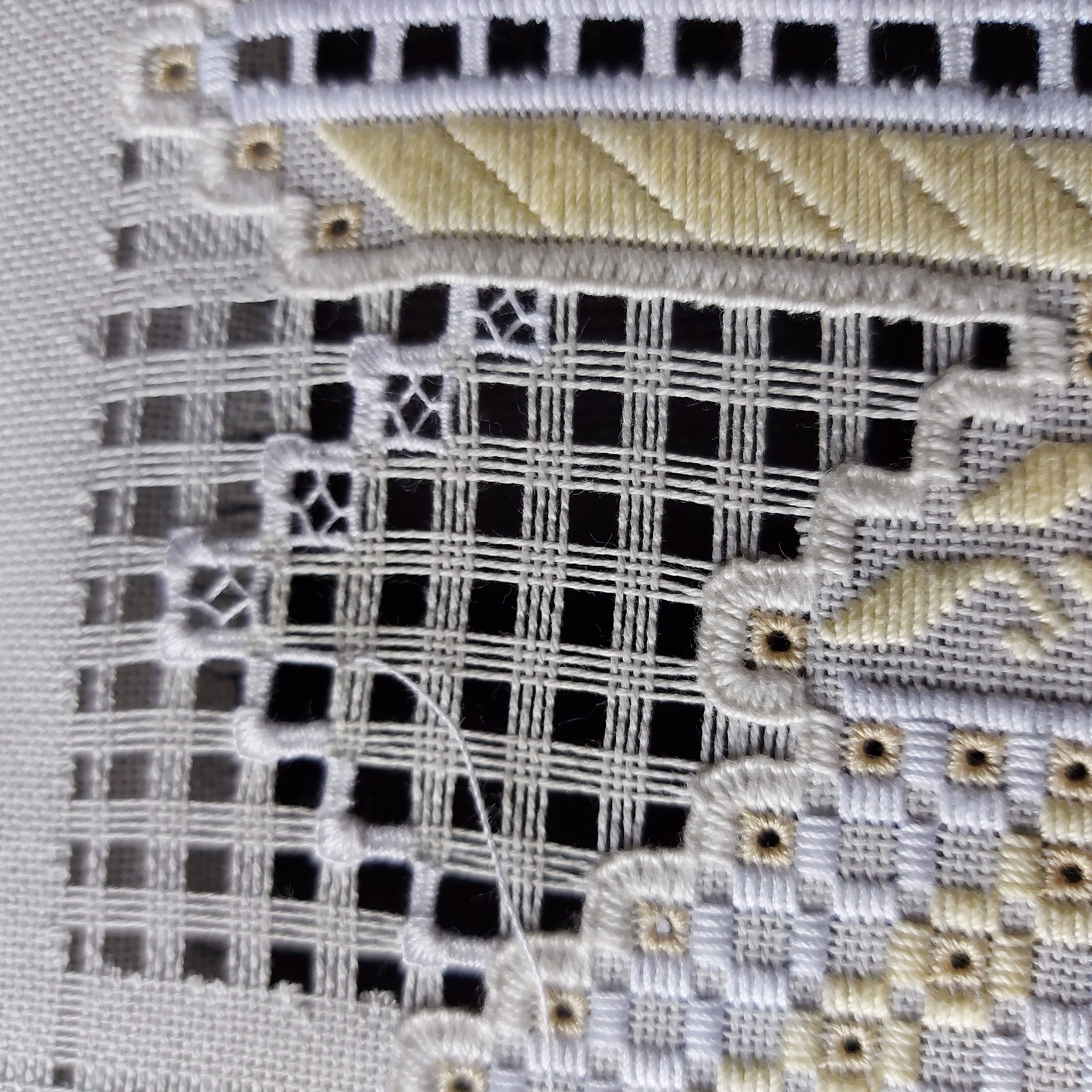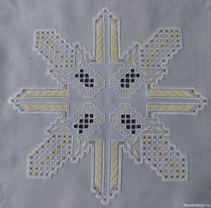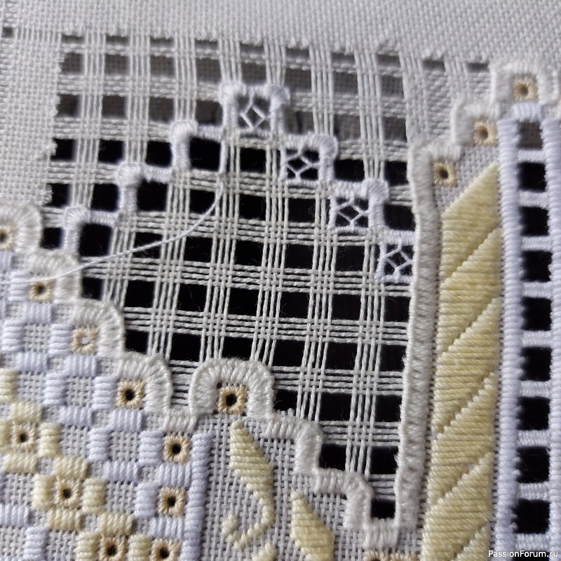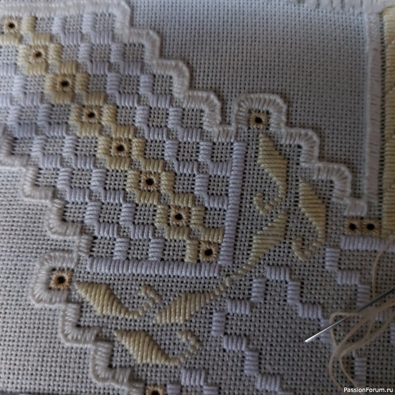 Каюсь, некоторые элементы я упростила, так как я не очень опытная вышивальщица хардангера, но надеюсь что это не очень критично.