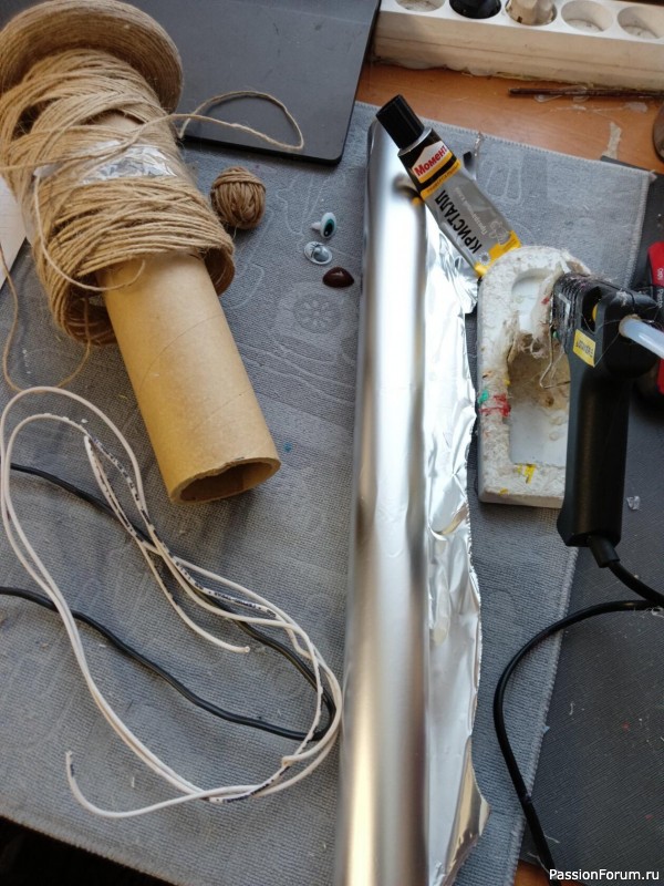 делаем заготовочки из фольги ножки ручки вначале из проволоки.а потом обматываем(обкручиваем, облепляем)фольгой