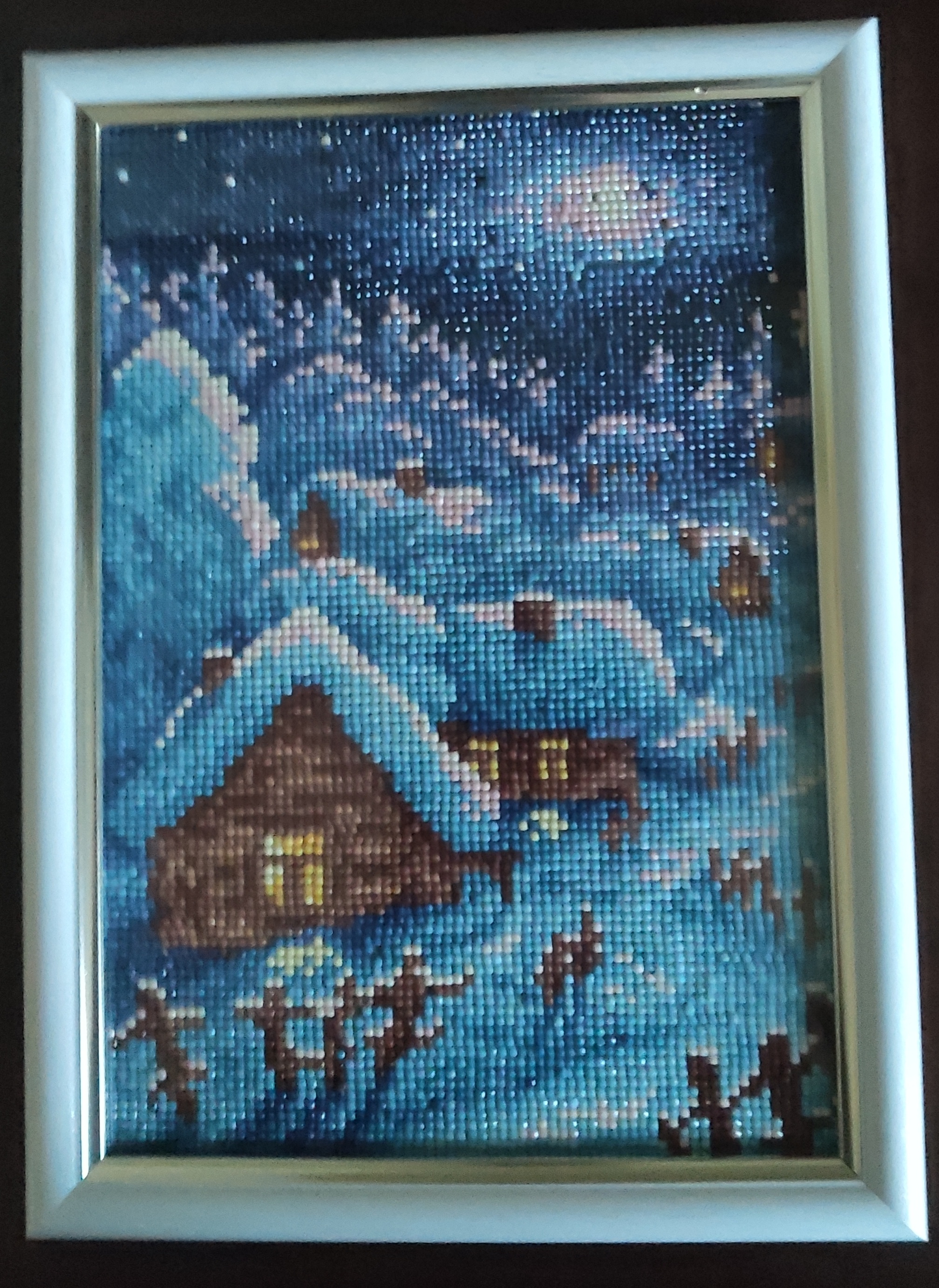 Картина выполнена в технике алмазной мозаики, размер 20х27 см.