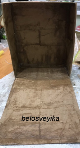 Я конечно понимала, что картон очень, очень тонкий.Но на видео у мастера всё же получилось Стала делать, первый этап это заклеить крафт бумагой.Уже на первом этапе я поняла,что у меня не получается.Намокшая коробка вся перкорежилась.Чтоб выровнять стороны я приклеила к ним гофрокартон.Стала обклеивать крышку.Я же понимаю, что она то же перекорежиться.Поэтому я перевернула обклееную коробку крышкой вниз, открыла крышку и поставила тяжелый пакет со стиральным порошком сверху.Всю эту конструкцию я разестила на полу с подогревом.в ванне.После высыхания я обнаружила, что крышка загнулась дугой.Не помог мой метод.Пришлось стабилизировать крышку то же гофро картоном.Но так как он по толщине мешал открыванию крышки, я его в потом оторвала. Считаю эту коробку неудачным эксперементом, но опыт, сын ошибок трудных, я приобрела.Конечно желание работать с ней у меня пропало после первой неудачи, но я не привыкла сдаваться, поэтому доделала её до конца.