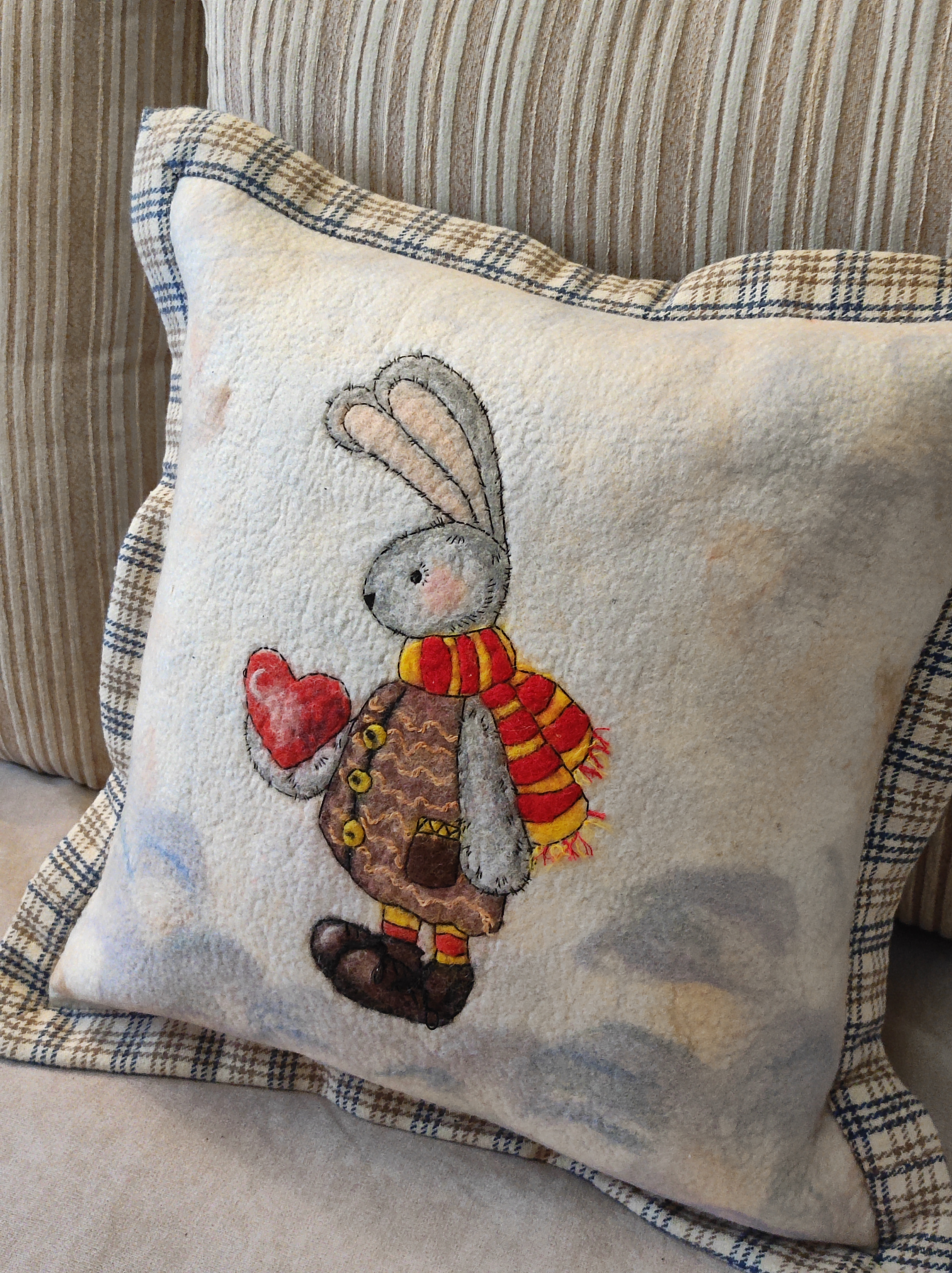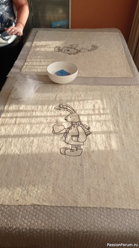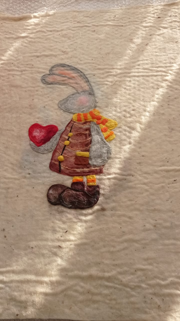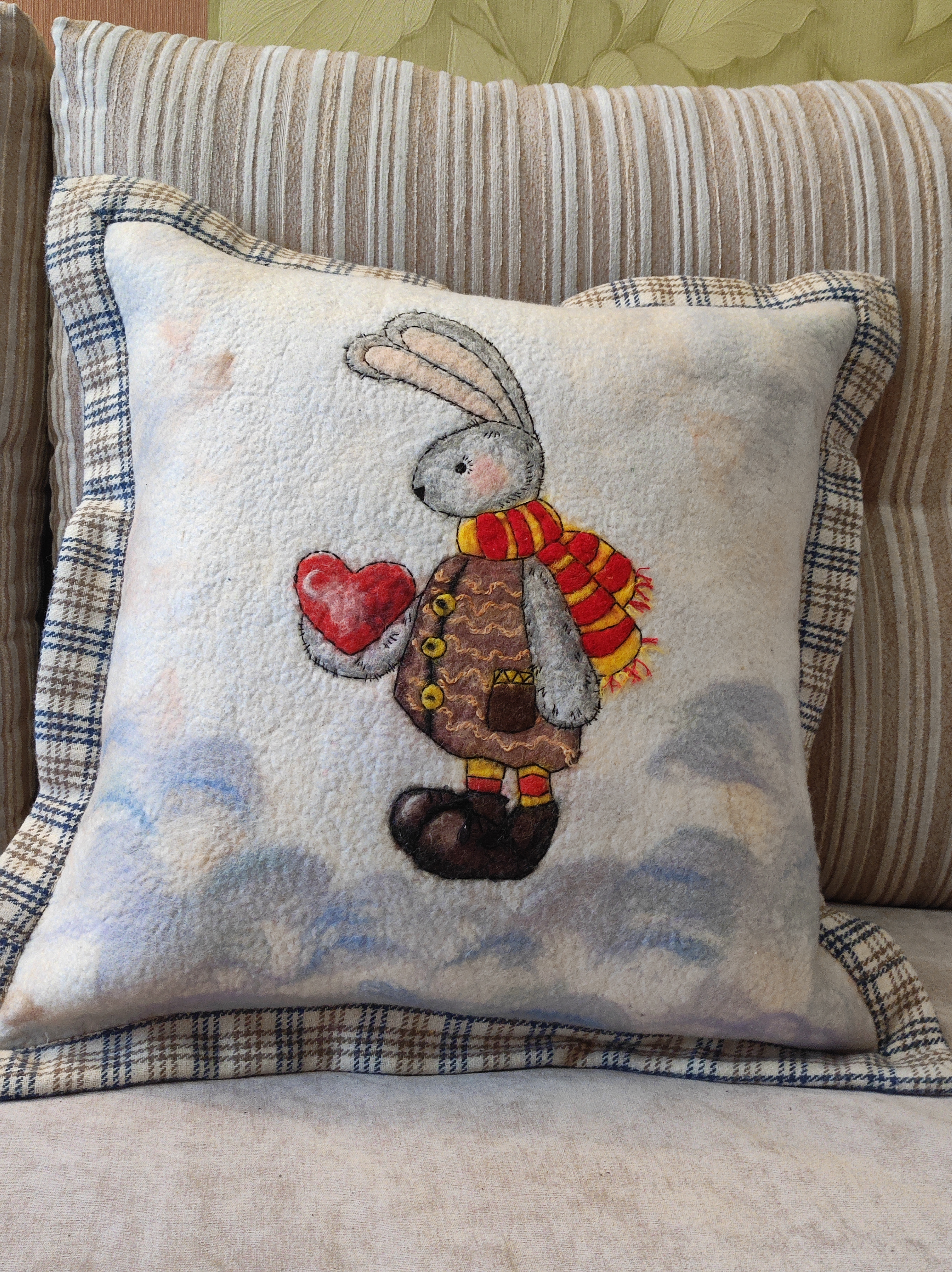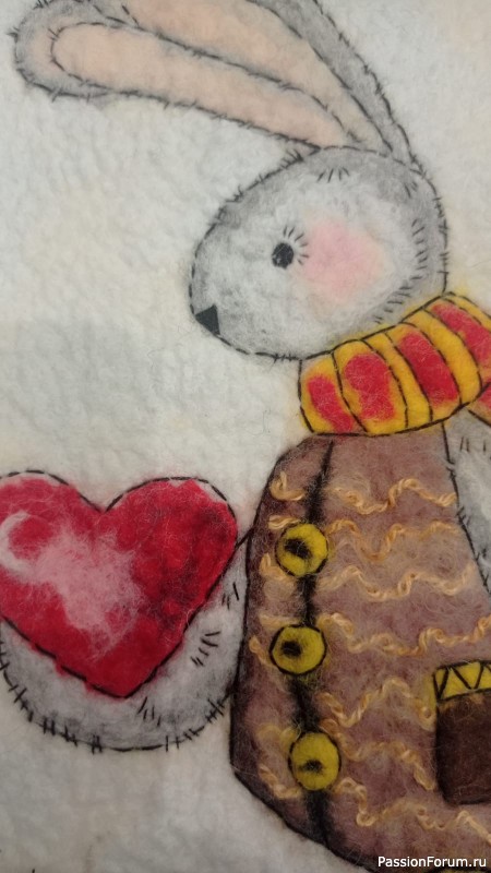 Добрый день, друзья! Долго думала можно ли в конкурсе представить эти чудесные работы. Ведь их делала не я ! А мои "ученицы". Дело в том, что я первый раз в жизни провела МК по валянию. Для меня это очень серьезный шаг и своего рода маленькая ступенька по творческой лестнице. Это девочки попросили провести МК по подушке и нанесению рисунка шерстью. Первого зайку, которого делала я, возможно, вы уже видели.