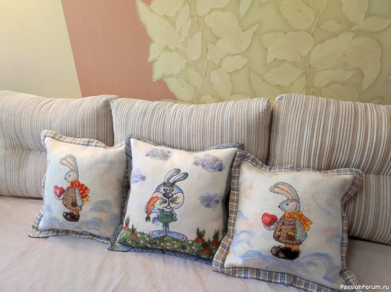 Такая интересная работа и в результате шикарные подушки с милейшими зайчиками. Молодцы все!