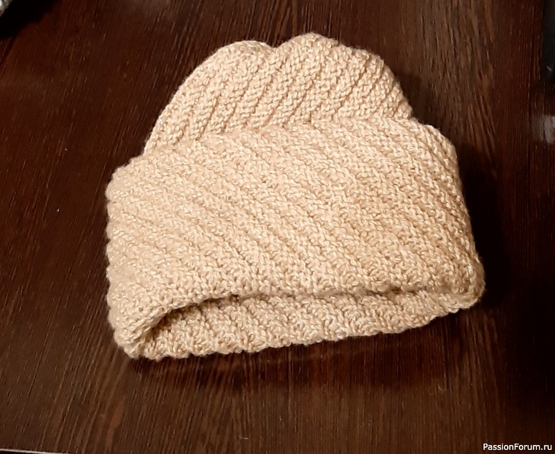 Добрый всем день,вечер! Вот еще шапку связала. Пряжа не знаю какая,на вид,как полушерсть с тоненькой ниточкой люрекса. Получилась с 2-мя отворотами
