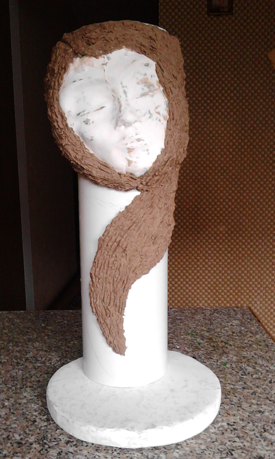 Интересная задумка!!! Дама хорошА!!! А про волосы… Не надо вокруг лица их делать, а то точно как борода у юнца.Шейку можно прикрыть колье из ленточки и маленький кулончик, и все будет как надо, Это на будущее.Мы постоянно учимся!!! Удачи!!!