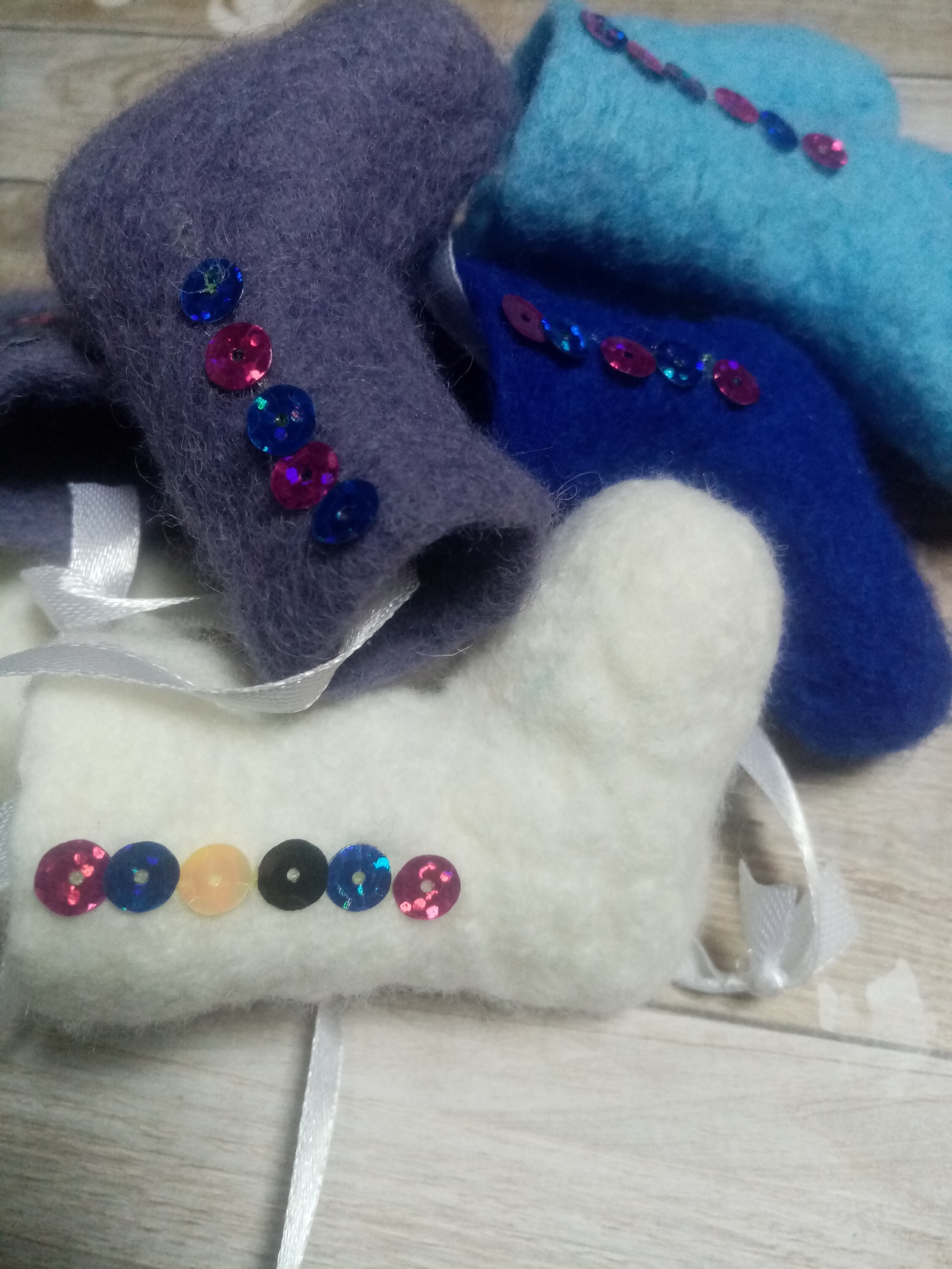 Дорогие форумчанки! Год заканчивается, надо подводить итоги, а особо нечем...как-то не очень валялось в этом году.Выручали многочисленные встречи с родственниками, среди которых много девочек,дарила им оплечья да и рождение племяшей тоже радовало-появлялись пинетки... ну и так, по мелочи валялось,чтобы руки не забыли... конечно, валяние выручает, когда надо подарить что-нибудь эдакое, да и релаксация, опять же.