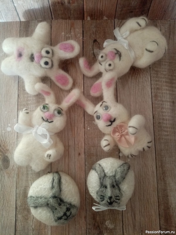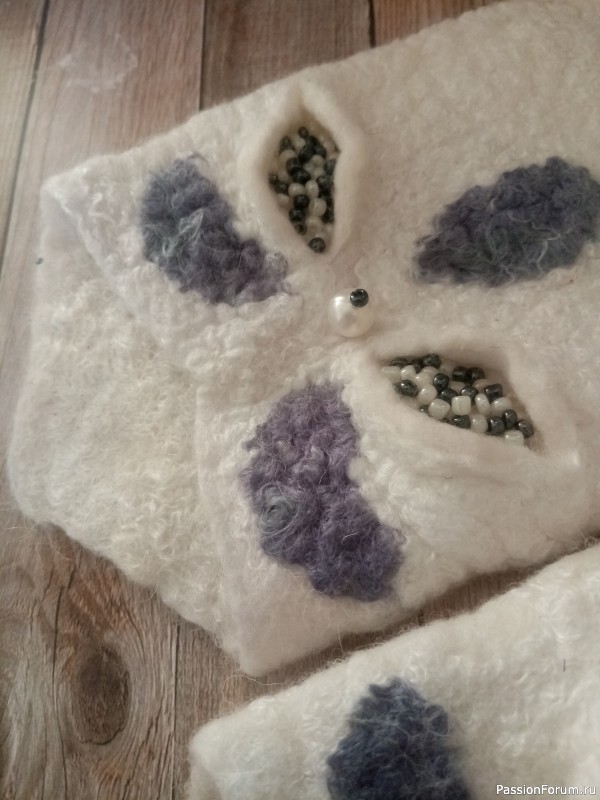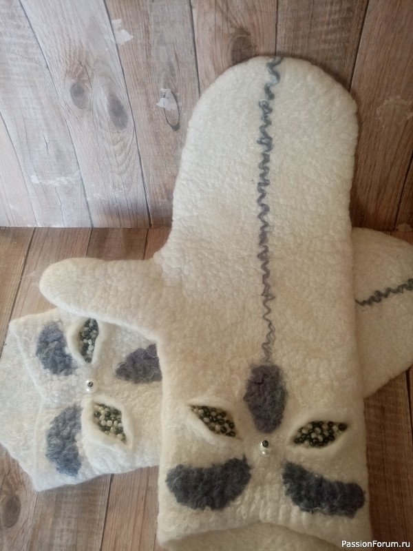 Оплечья валяют редко, а тут сразу пять штук! Очень понравилось оплечье ИньЯнь! Оригинальные варежки и шептуны-зайцы!