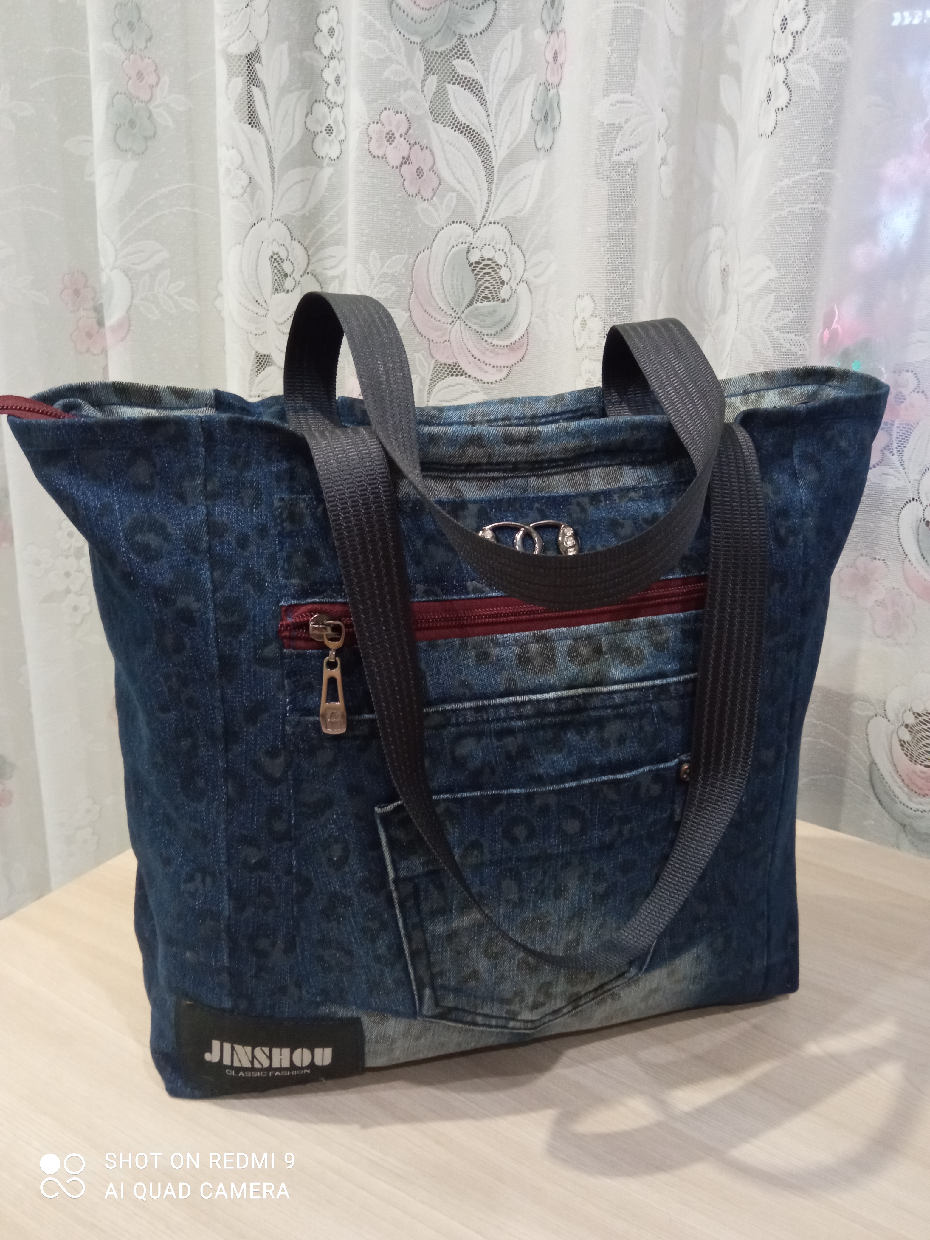 Приветствую всех рукодельниц и предлагаю посмотреть очередную джинсовую сумку, сшитую в подарок сватье. Размер 35 х 40 см. Она живёт в небольшом городке, давно на пенсии. У меня были джинсы с тигровым принтом и хотелось из них что нибудь сшить. Вот я и подумала, что сватье будет приятно получить свежую сумочку. Сумка предназначена для похода по хозяйственным вопросам в магазин. В неё можно положить телефон в карман под замочек, кошелёк для покупок и дополнительную сумку шоппер для продуктов. Сумку удобно носить в руках и на плече. Конечно, ничего особенного в ней нет, поэтому сшила я её быстро - за 1,5 дня. Приглашение в гости я получила, поеду в новогодние каникулы на пару дней в гости к ней. Приятного просмотра.