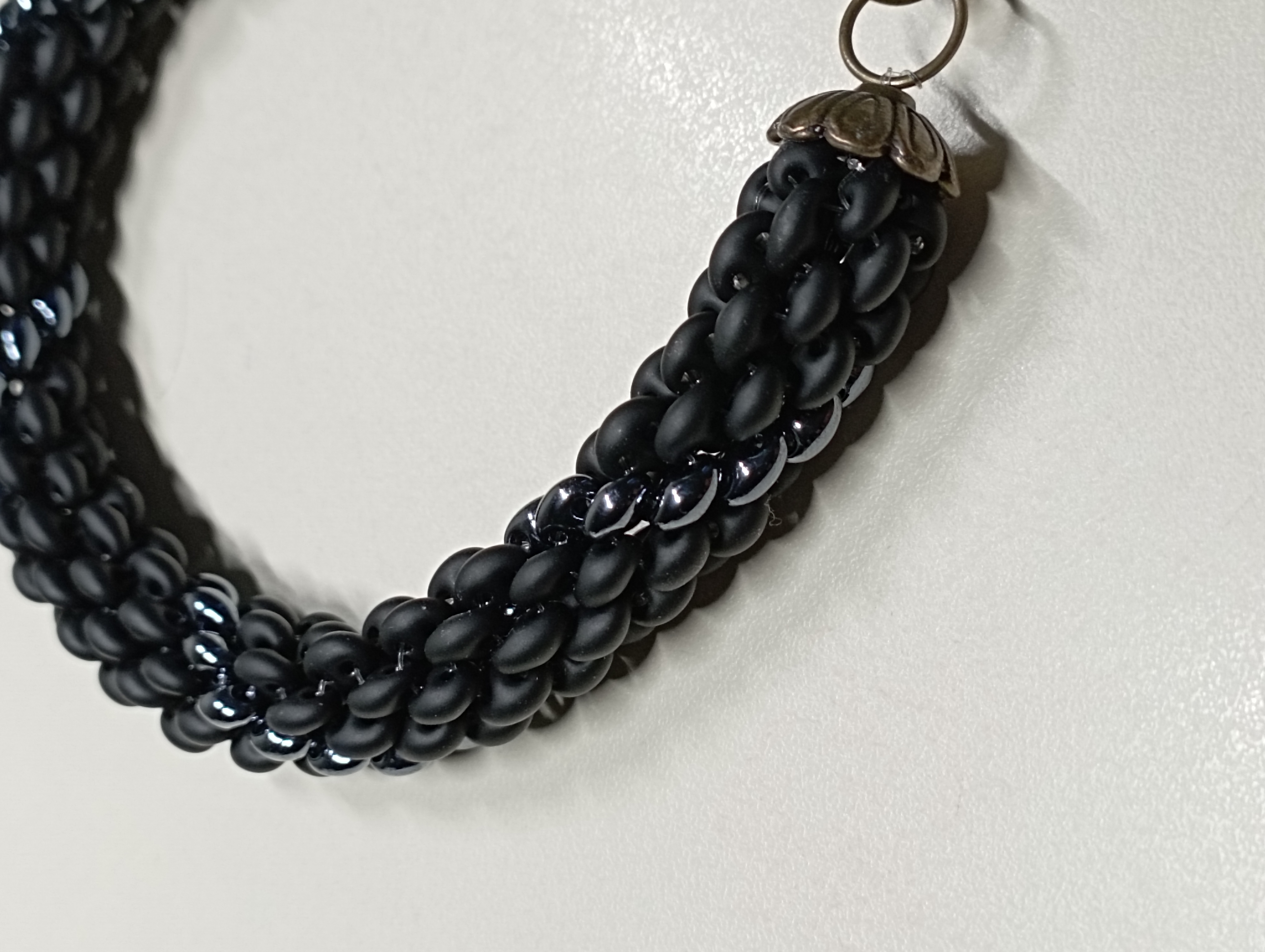 Браслетик в виде жгута из черного матового и блестящего твина.