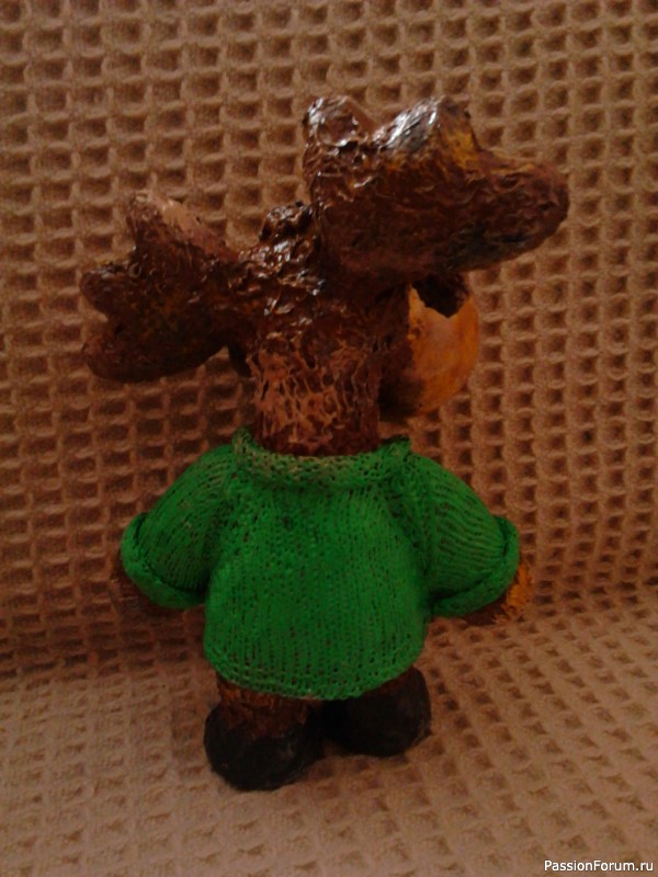 Спасибо! Что-то бликует, живьем — симпатичнее, Свитерок связала, обмакнута в клей, мокрый натянула, высозх — подкрасила, Лаком покрыта вся фигурка