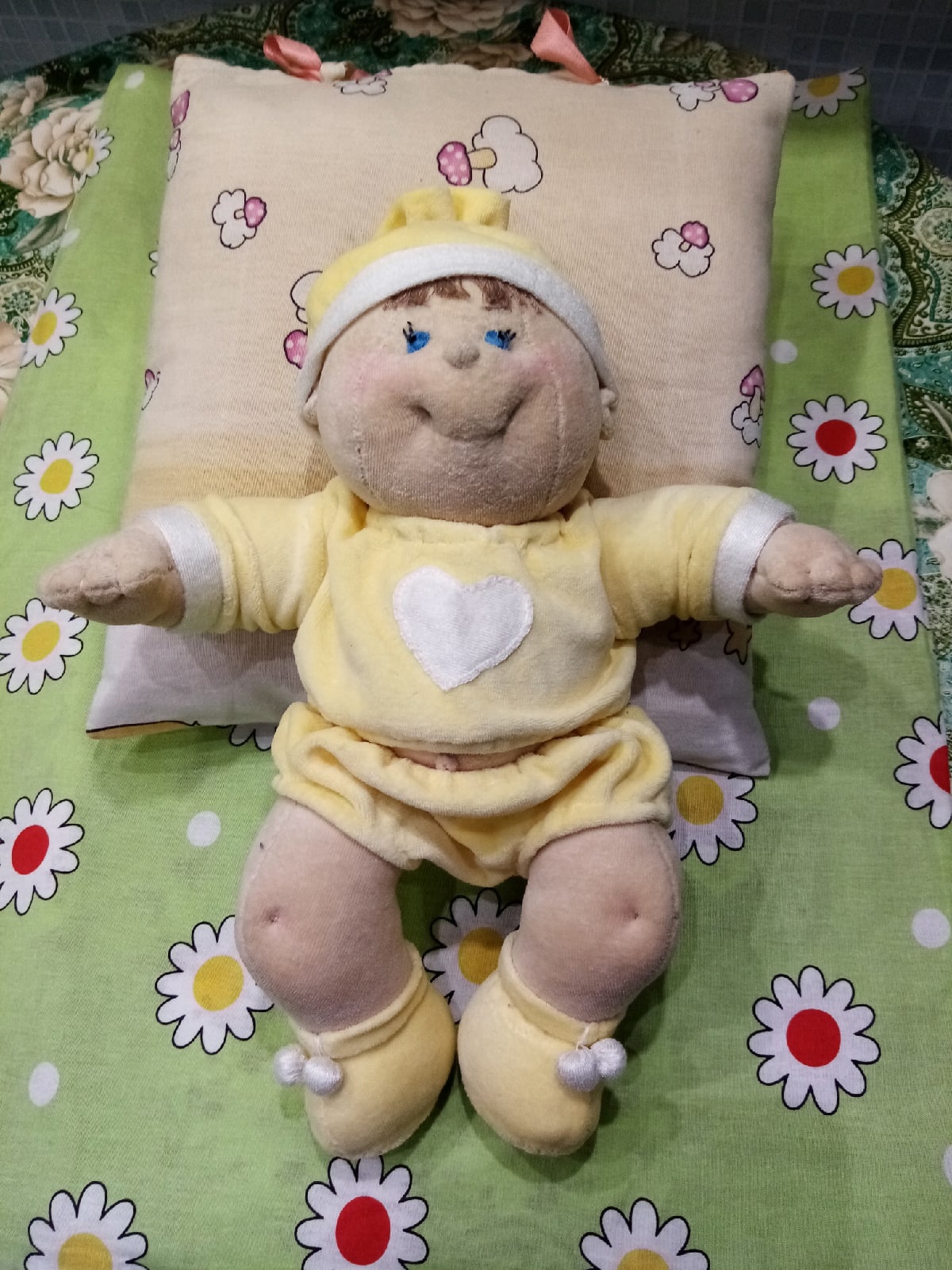 Согласна с Вами. Кукла-малыш очень тактильная — мягенькая и тёплая на ощупь, хочется её помячкать, не смотря на недостатки.