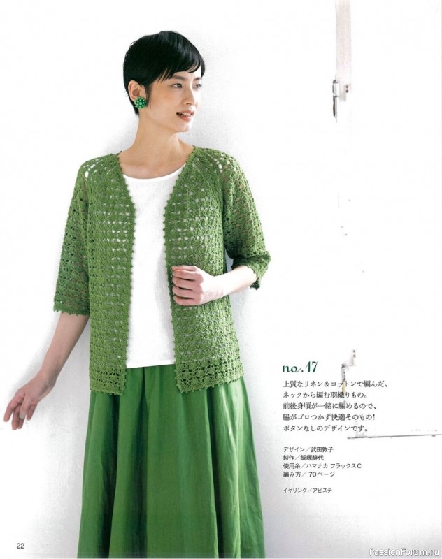 Популярный журнал по вязанию от японских дизайнеров, в котором представлена замечательная коллекция вязаных моделей женской одежды для весны и лета, выполненных крючком.