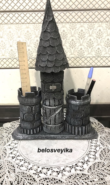 Людочка, а мне все очень понравилось!!! Для детей школьников отличная вещь для стола, где они занимаются и функционально и красиво, два в одном!!!!! В стиле средневековья или фэнтези, это как сейчас говорит это поколение — клево)))) Работа прекрасная и не простая, да еще так аккуратно сделана!!! Почему сразу функционал, разве наша жизнь состоит только из этого)) Глазу и красота нужна тоже!!! Я уверена если бы такой органайзер я преподнесла внуку он бы точно был в восторге!!! Другое дело, что я в свое время тоже хотела себе, что то подобное, но потом поняла, что для меня удобнее разные старые стаканы и баночки