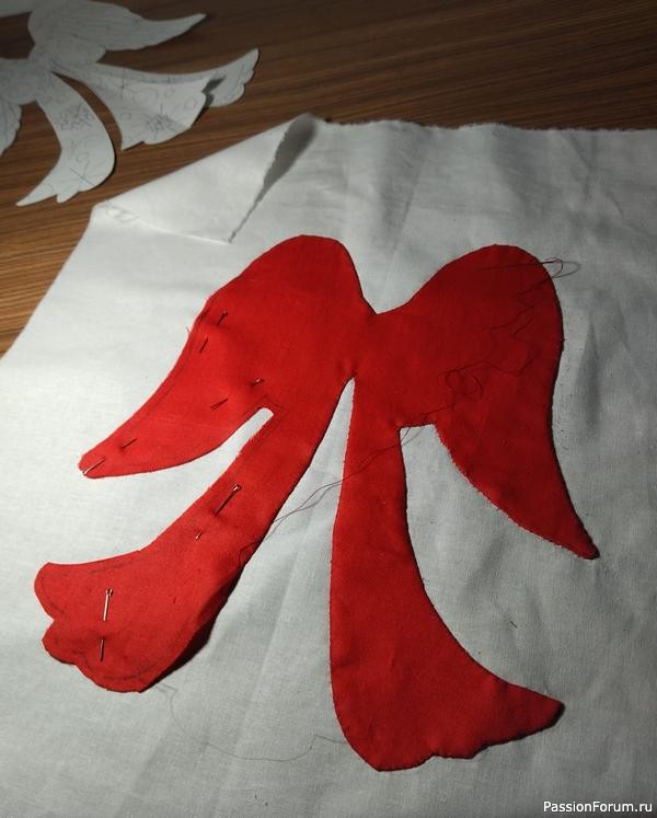 Материалы: белая бязь, красный сатин, шелковые нитки для вышивания ( красные, белые, телесные)
