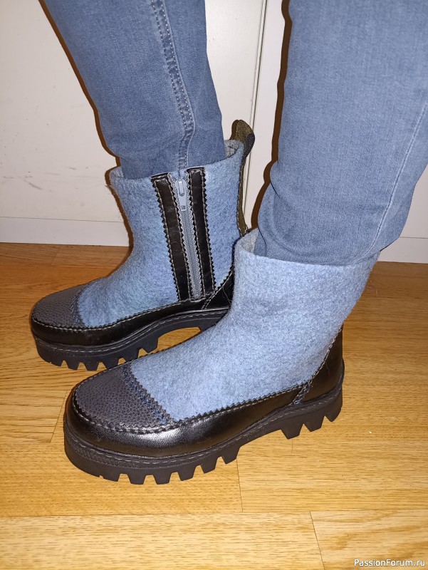 Валяла в подарок, чуть великоваты мне, поэтому про удобство узнаю после… я себе всегда кладу ортопедическую стельку, с ней вообще летаю! А вот насчёт тепла и уюта внутри-да, это точно. Обожаю войлочную обувь.