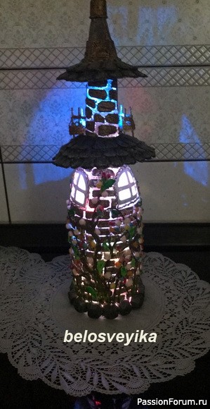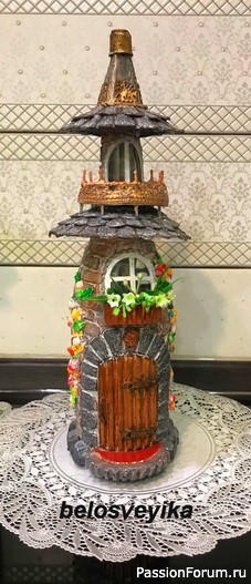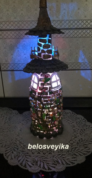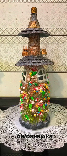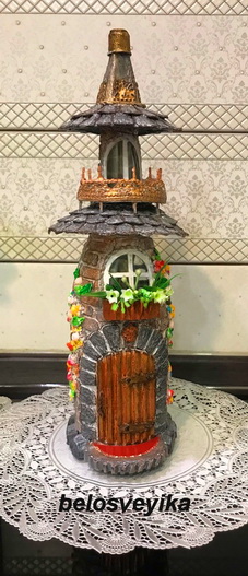 Верхний этаж напомнил устройство маяка; очень люблю морскую тематику в любом декоре, поэтому Ваша работа вдохновила на создание из бутылки маяка-светильника. Надеюсь, получится