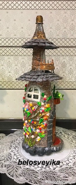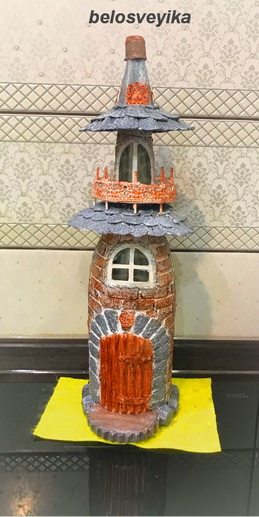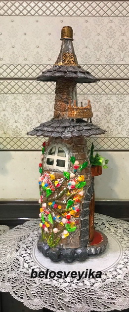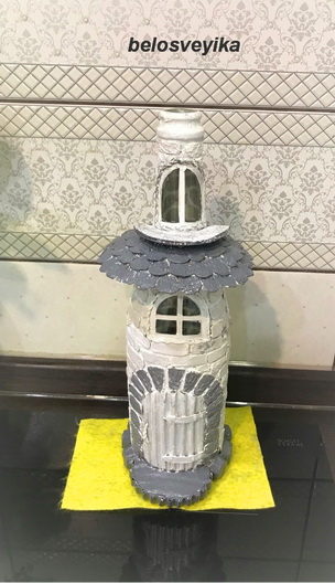благодарю.Да, похож на маяк, надо было круглый балкон сделать вокруг всего горлышка бутылки, как на маяке.Поздно эта идея мне в голову пришла, уже маленький балкон сделала.Но маяк в моих планах есть, сделаю