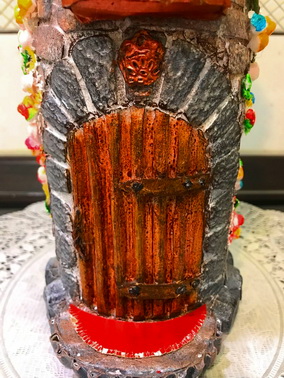 В этом домике я воплотила все свои хотелки.Двери из гофрокартона, кирпичики из лотков от яиц.Из нее башенка крыша и черепица.Ствол дерева -это салфетки крученые.Для украшения дерева использовала яичную скорлупу, воздушный пластилин( в качестве молда использовала блистеры от таблеток),шарики от пенопласта, листья из глины.Очень мне нравятся балкончики в таких домиках, конечно же я сделала на 2 этаже балкончик.В качестве ограждения использовала зубочистки-это столбики, кружево, которое делаю сама из силикона и клея.Рамы вырезала из тонкого картона.Крыша второго этажа съёмная.Можно заправить туда светодиодную гирлянду.Пробовала с ней.При свете красиво смотрится.Если свет выключить, то вся бутылка просвечивает, все кирпичики видны, мне не понравилось так.Цветы на маленьком балкончике искуственные, покупные.Сняла немного процесса.Стены довела полностью до готовности еще до приклеивания дерева.