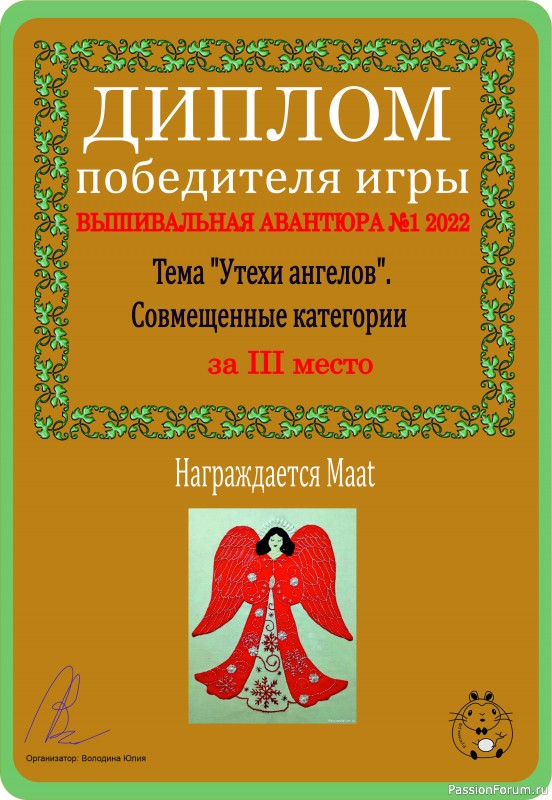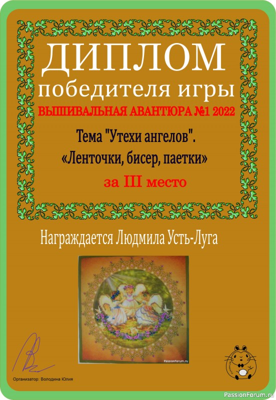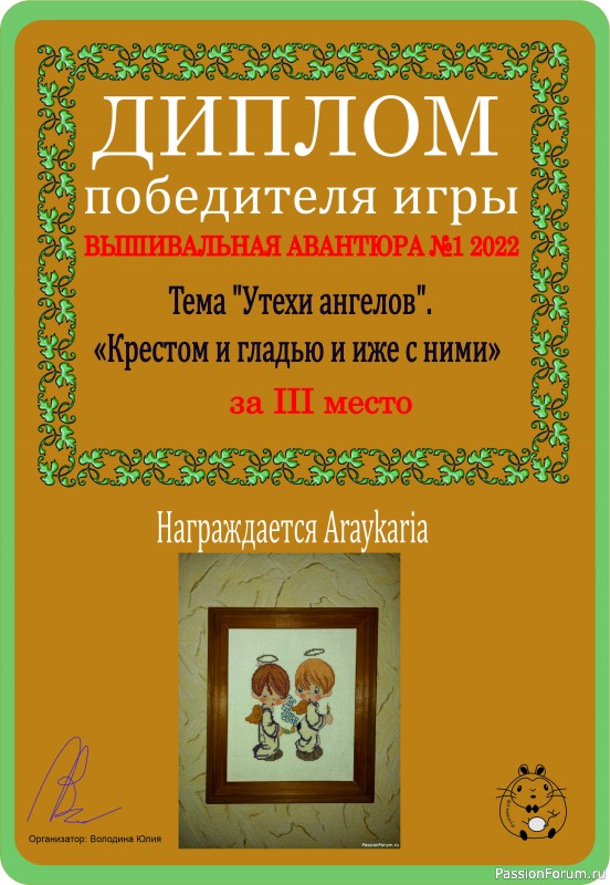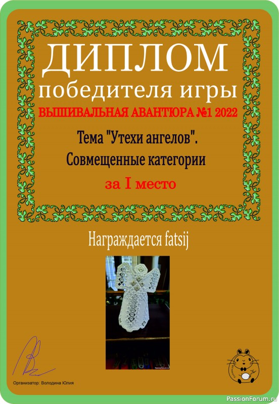 Во-первых, я назначила новую премию тооолько для игры "Вышивальная авантюра"!