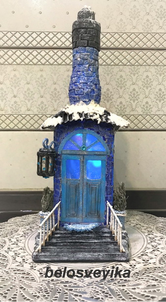Чудесный домик! Столько интересных деталей — с удовольствием все рассматривала! Очень понравились синие «стекла» в окнах — очень красиво!