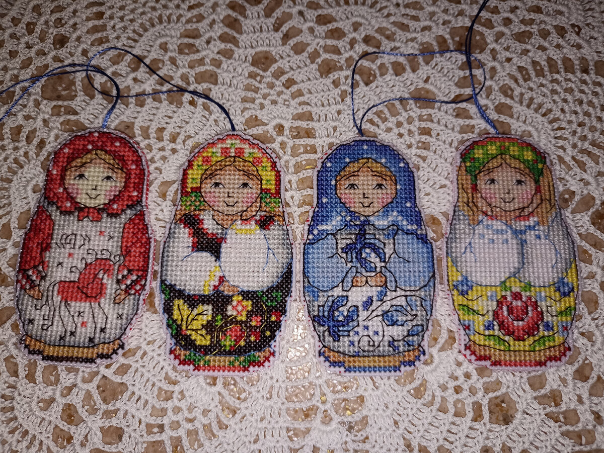 Доброго времени суток! Закончила вышивать всех матрёшек из набора производителя "Жар-птица" и небольшую вышивку от "Риолис".