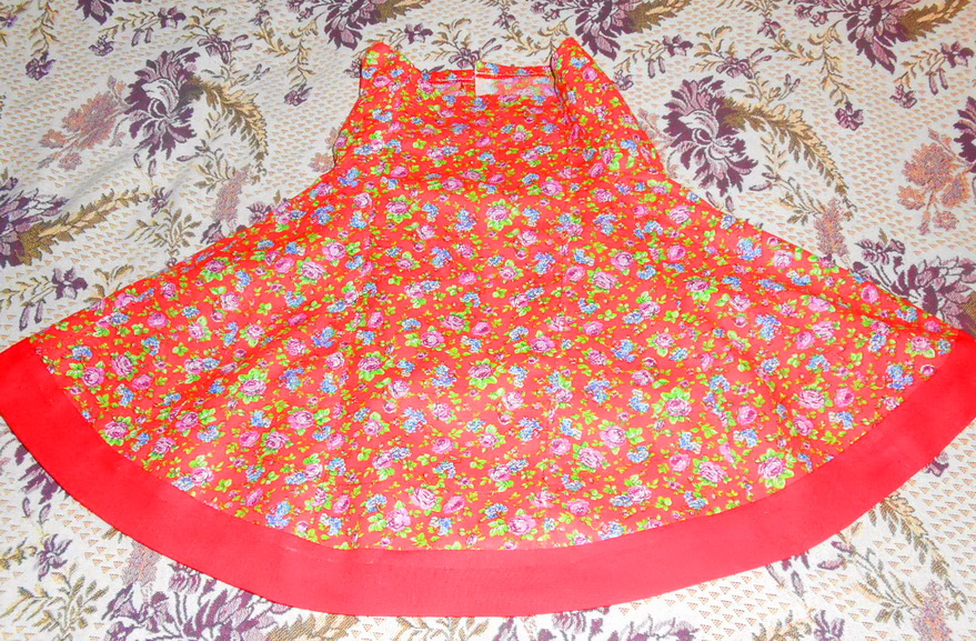 Сшила заказ,пришла внучка,померила и то же такое захотела.Сшила и ей. Это было её самое любимое платье, на все утренники она надевала только его(ну кроме НГ конечно).Ткань плательный габардин, не мнётся.
