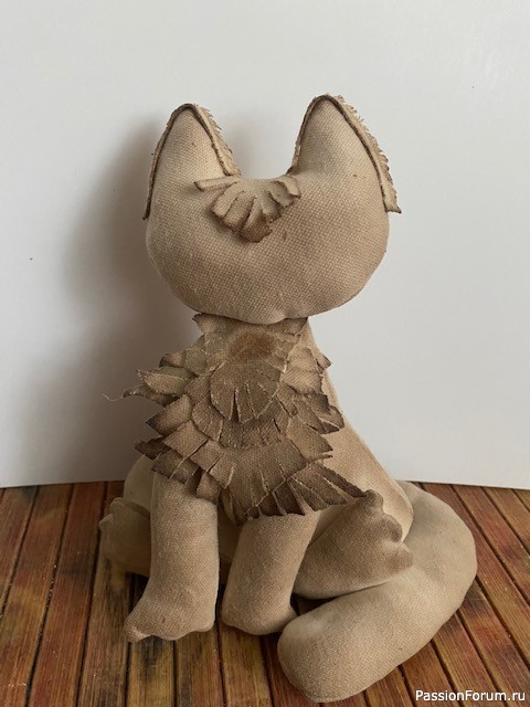 Вот уже полуфабрикат котика. С наклееными грудкой, ушками и сзади полоска, на другом фото дальше будет вид сзади.