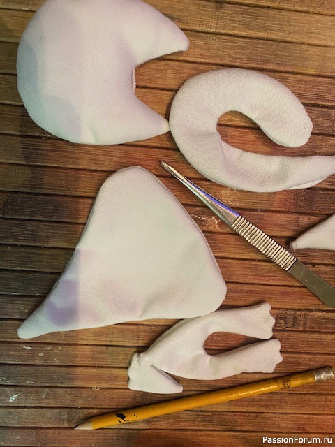 Затем аккуратно сшиваю, и выворачиваю при помощи пинцета. И приступаю к набивке, тоже при помощи пинцета.