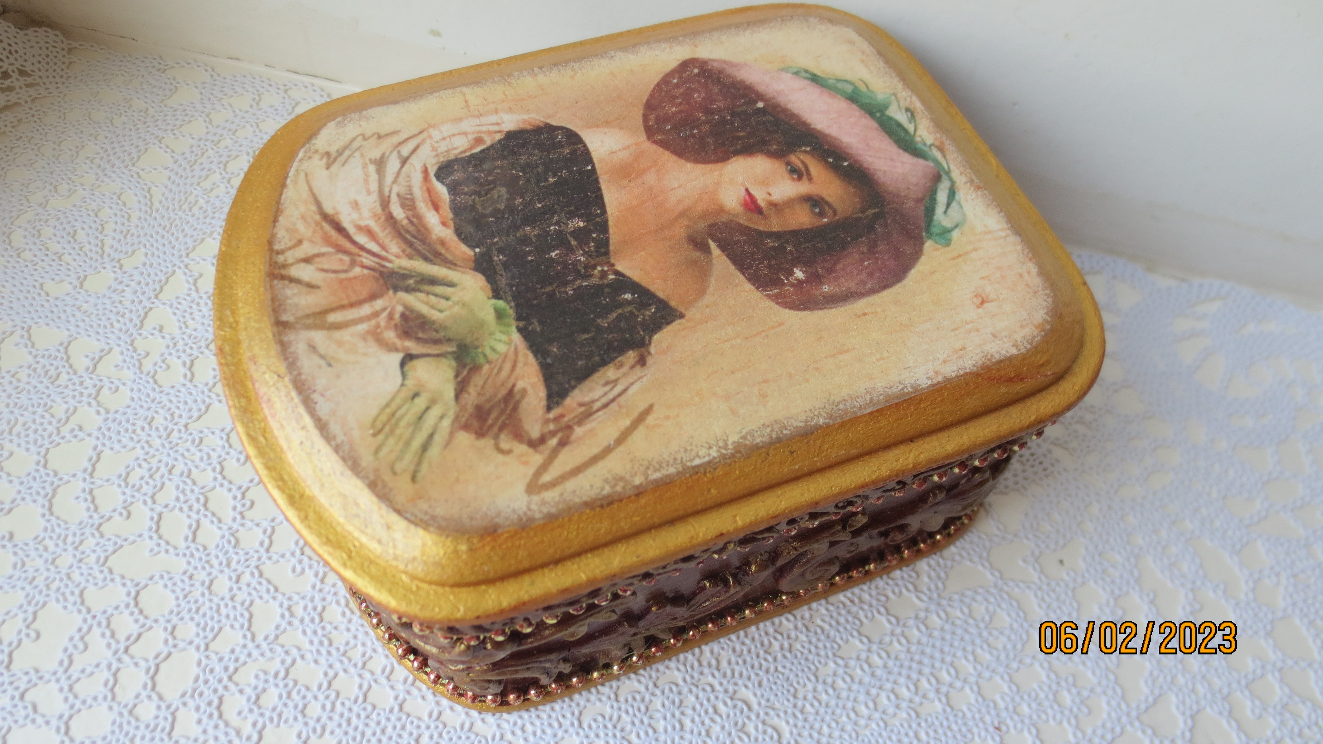 А вот ещё одна шкатулочка "Дама в шляпе".