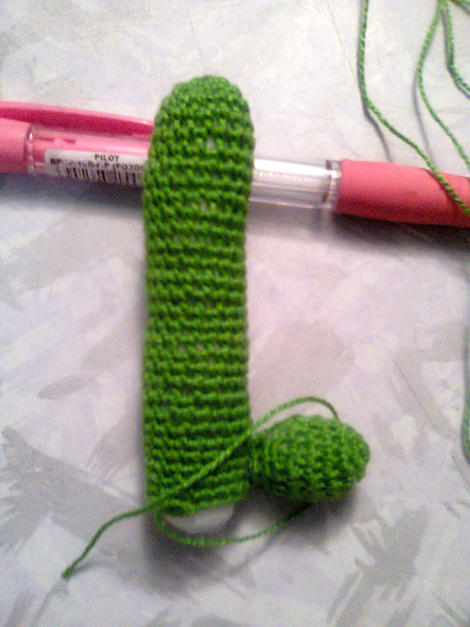 Связать по кругу без изменений еще 21 ряд. Оставить нить для пришивания.
