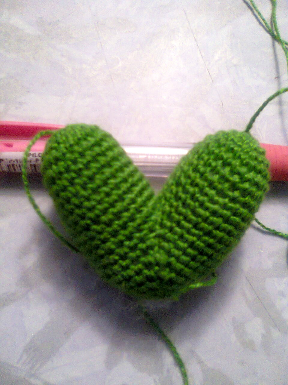 Начиная со следующего ряда, делать 4 убавки в каждом ряду: посередине сердечка и по бокам, по