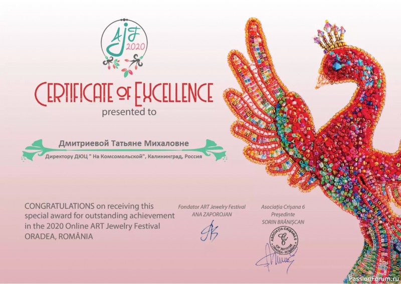 В ювелирном фестивале участвовали мастера из 25 стран, три континента. Моя жар-птица имела честь стать символом это фестиваля. Я очень горжусь своими достижениями.